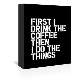 First I Drink the Coffee - Wrapped Canvas Wall Art - Black