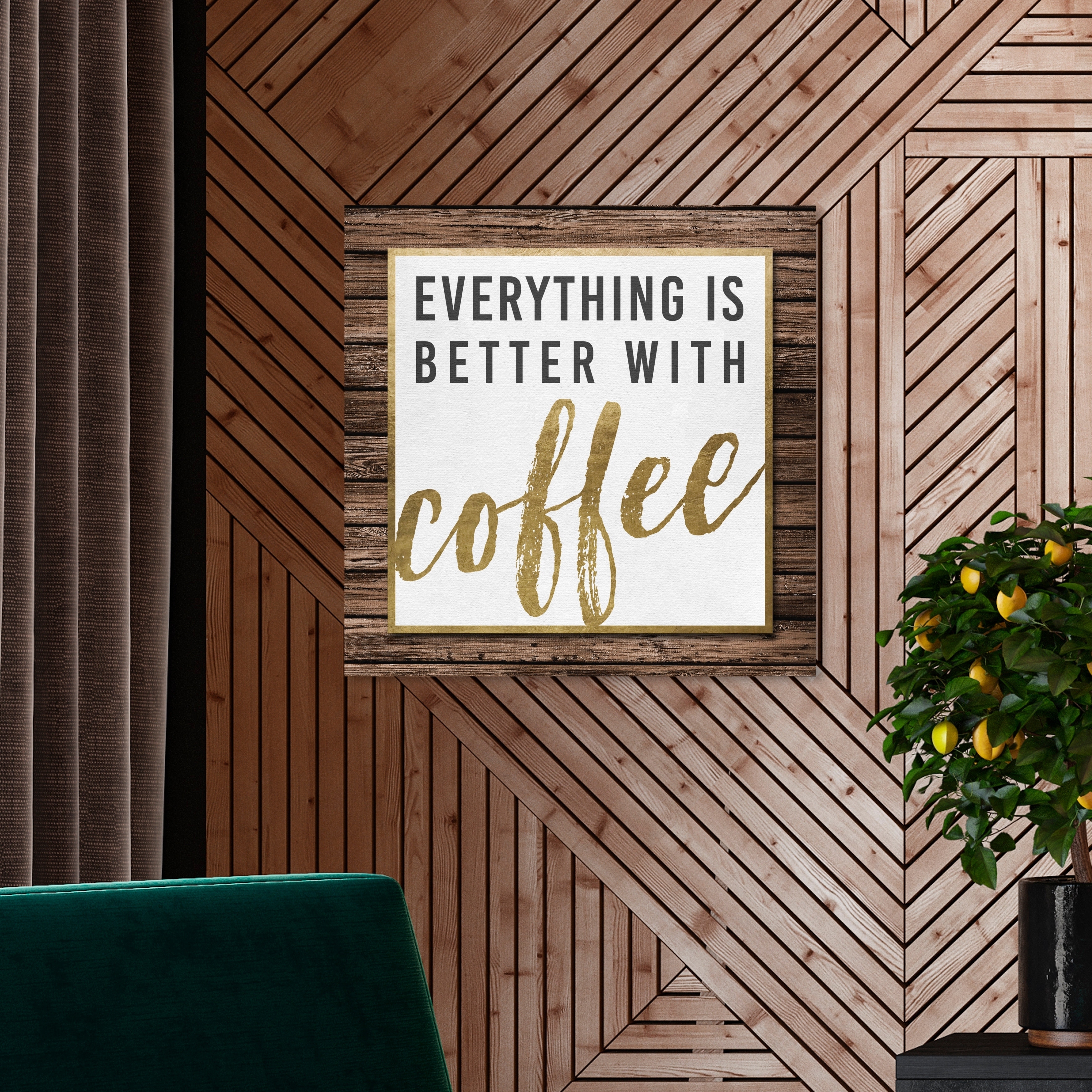 Oliver Gal 'Everything Is Better with Coffee Gold' Drinks and Spirits Wall Art Canvas Print - Gold, Black