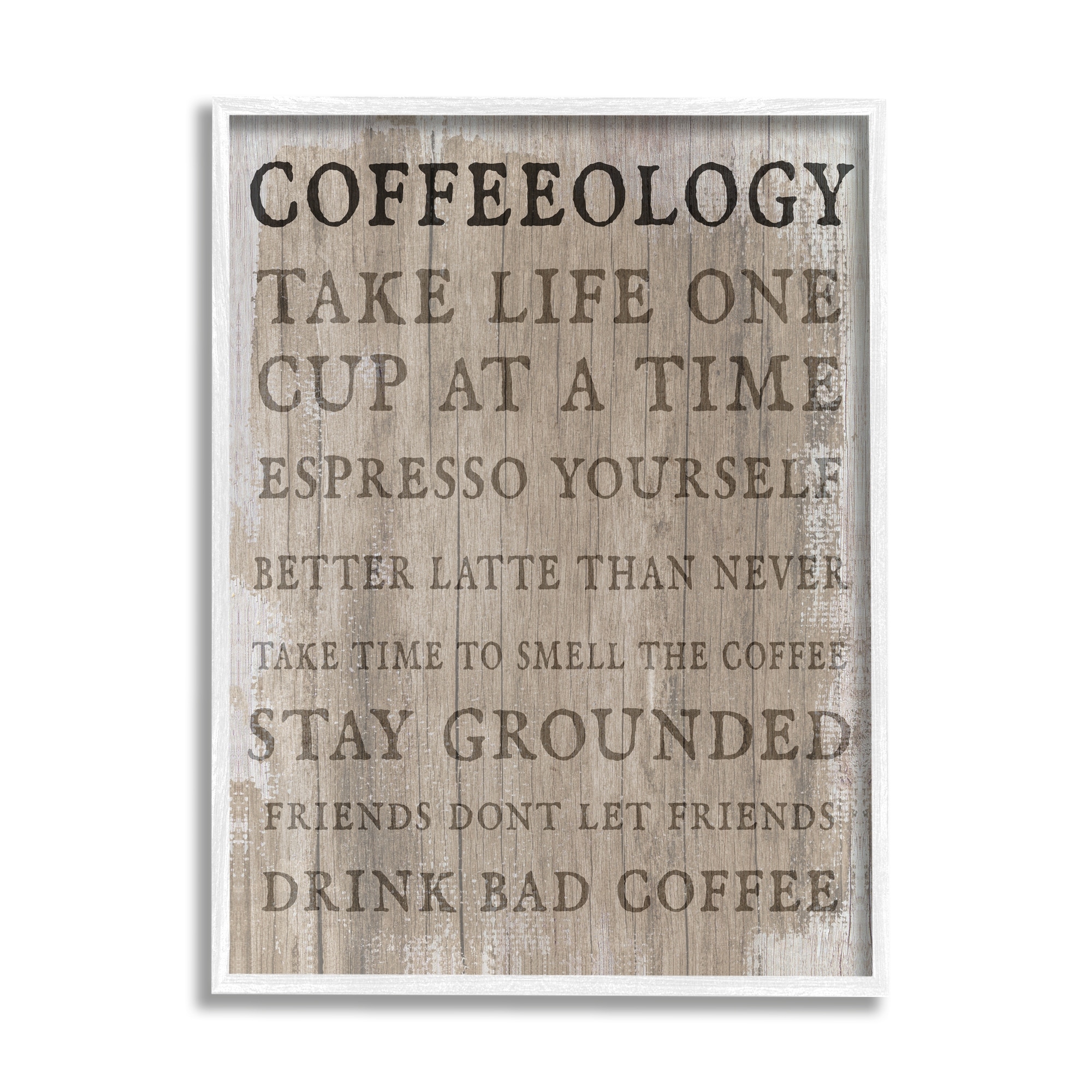 Stupell Rustic Coffeeology Sign Espresso Positivity Phrases Drink Puns Framed Wall Art - Tan