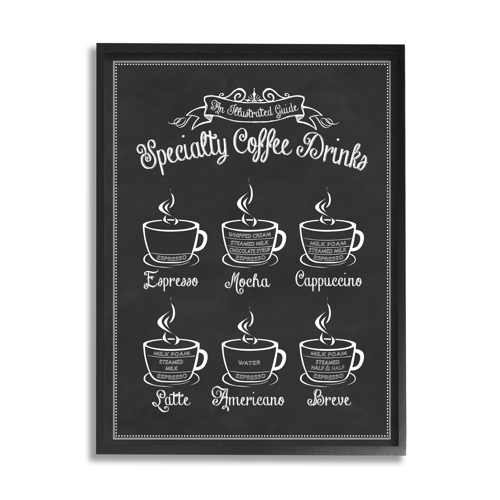 Specialty Coffee Drinks Vintage Typography Framed Wall Art