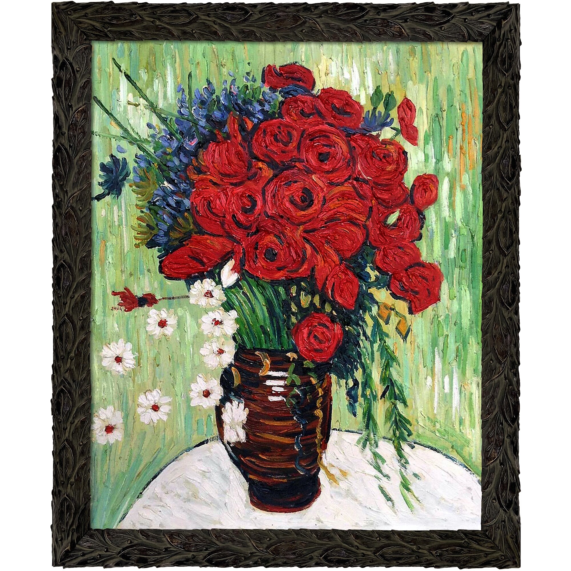 La Pastiche Vase with Daisies and Poppies with Feathered Ebony Frame, 19.24" x 23.24"