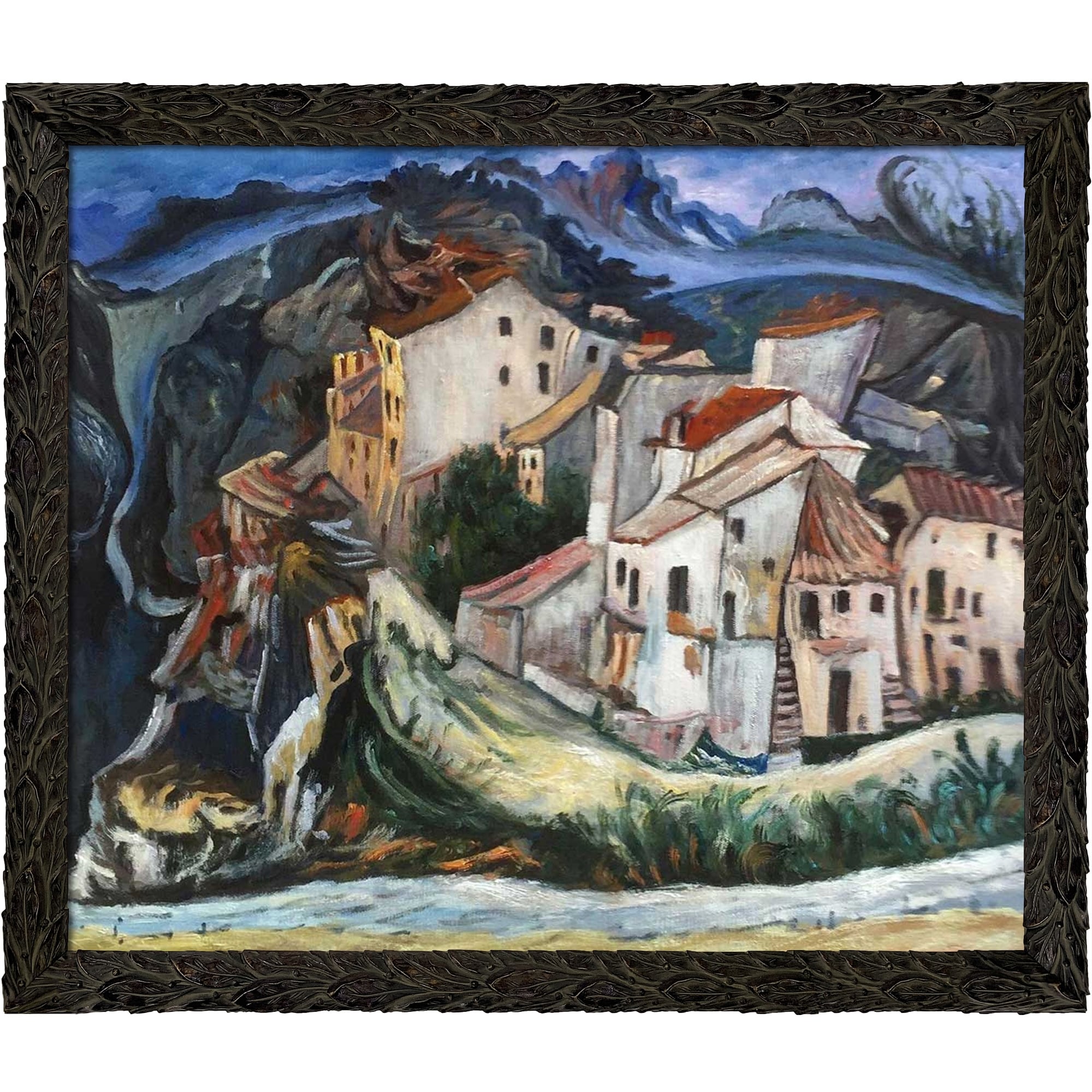 La Pastiche View of Cagnes with Feathered Ebony Frame, 23.24" x 27.24"