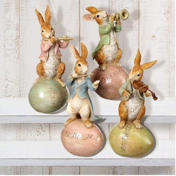 Resin Vintage Music Bunnies on Egg 9" Set of 4"