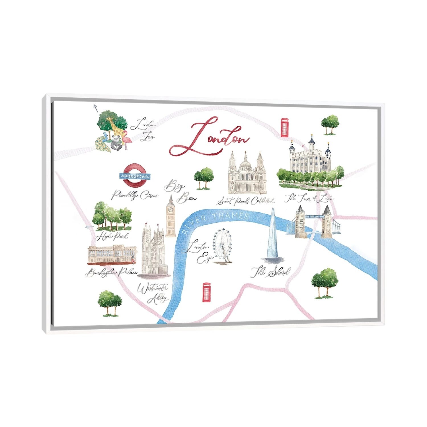 iCanvas "London England Map" by Sarah Hayden Framed|Black