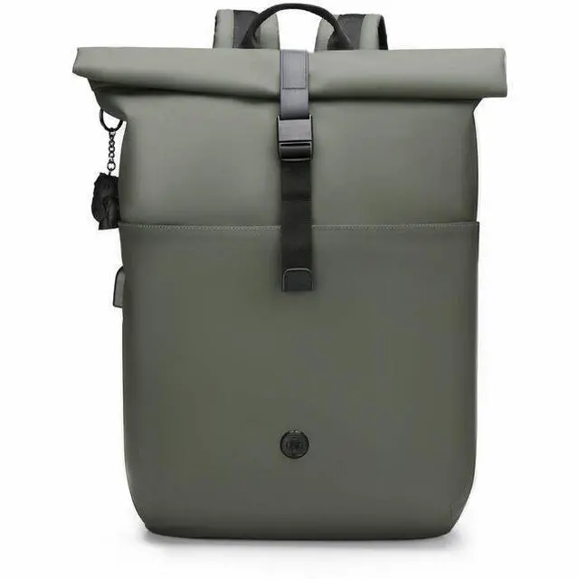 Swissdigital LAMONE Dark Green Rolltop Backpack - USB Charging Port - RFID Protection Pocket - Eco-Friendly & Water Resistant Fabric - Fits 16" Laptop SD1681-23