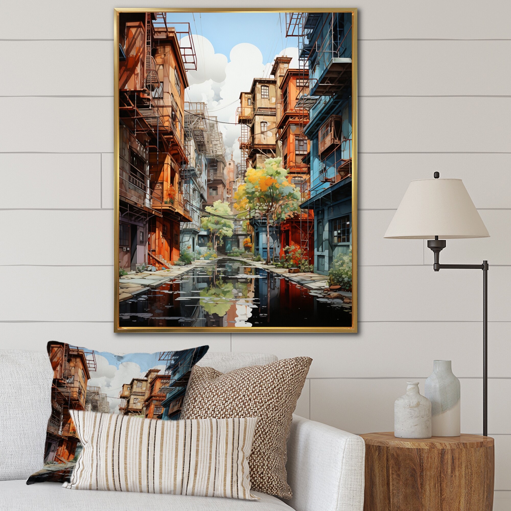 Designart "Industrial Symmetry Collage II" Factories Framed Canvas Wall Art