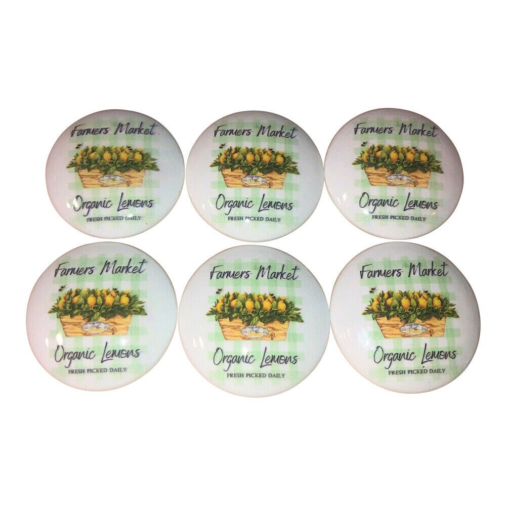 Set of 6 Farmers Market Organic Lemons Wood Cabinet Knobs - 1.5" Wide