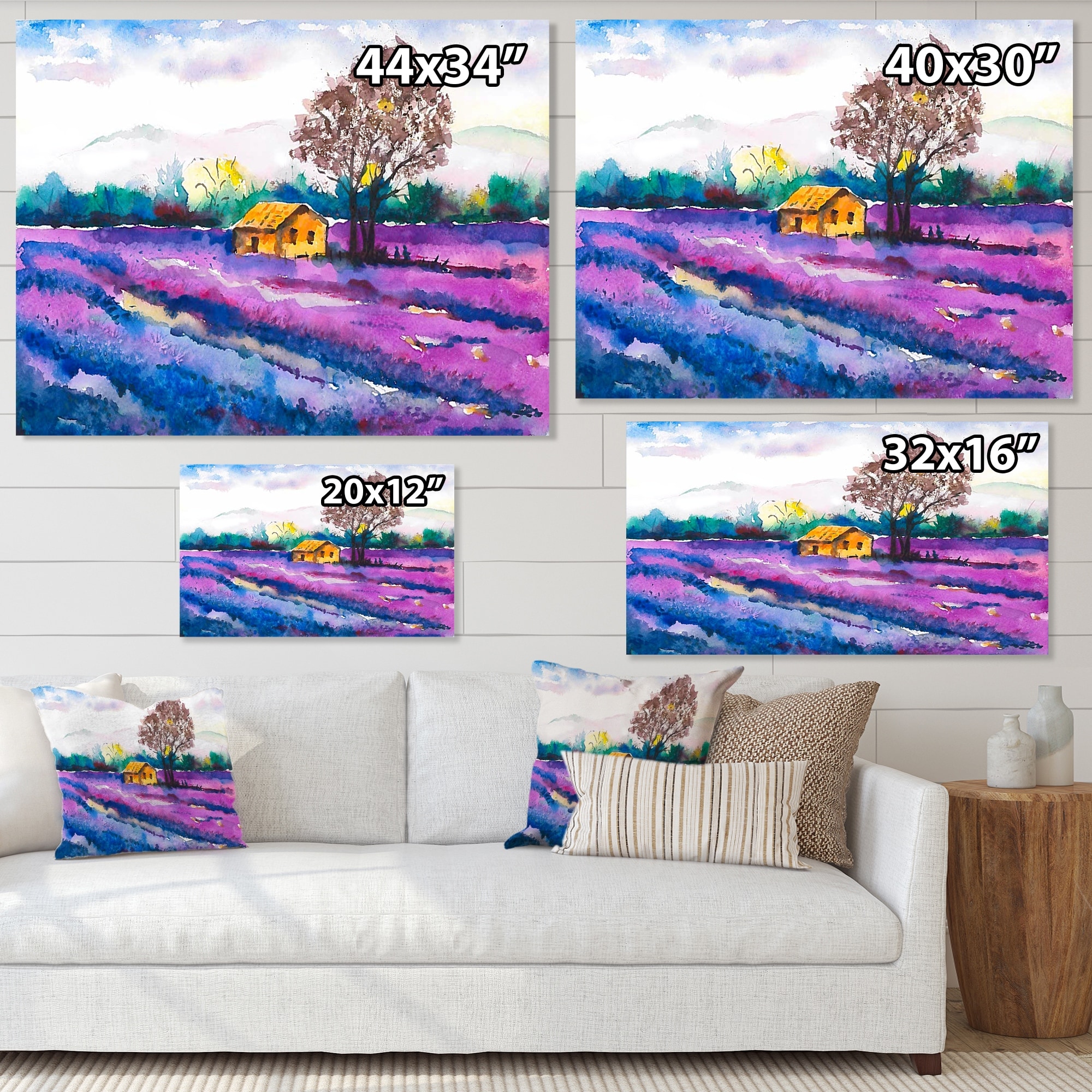 Designart "Lonely Farmer'S House on A Field of Lavender" Country Canvas Wall Art Print