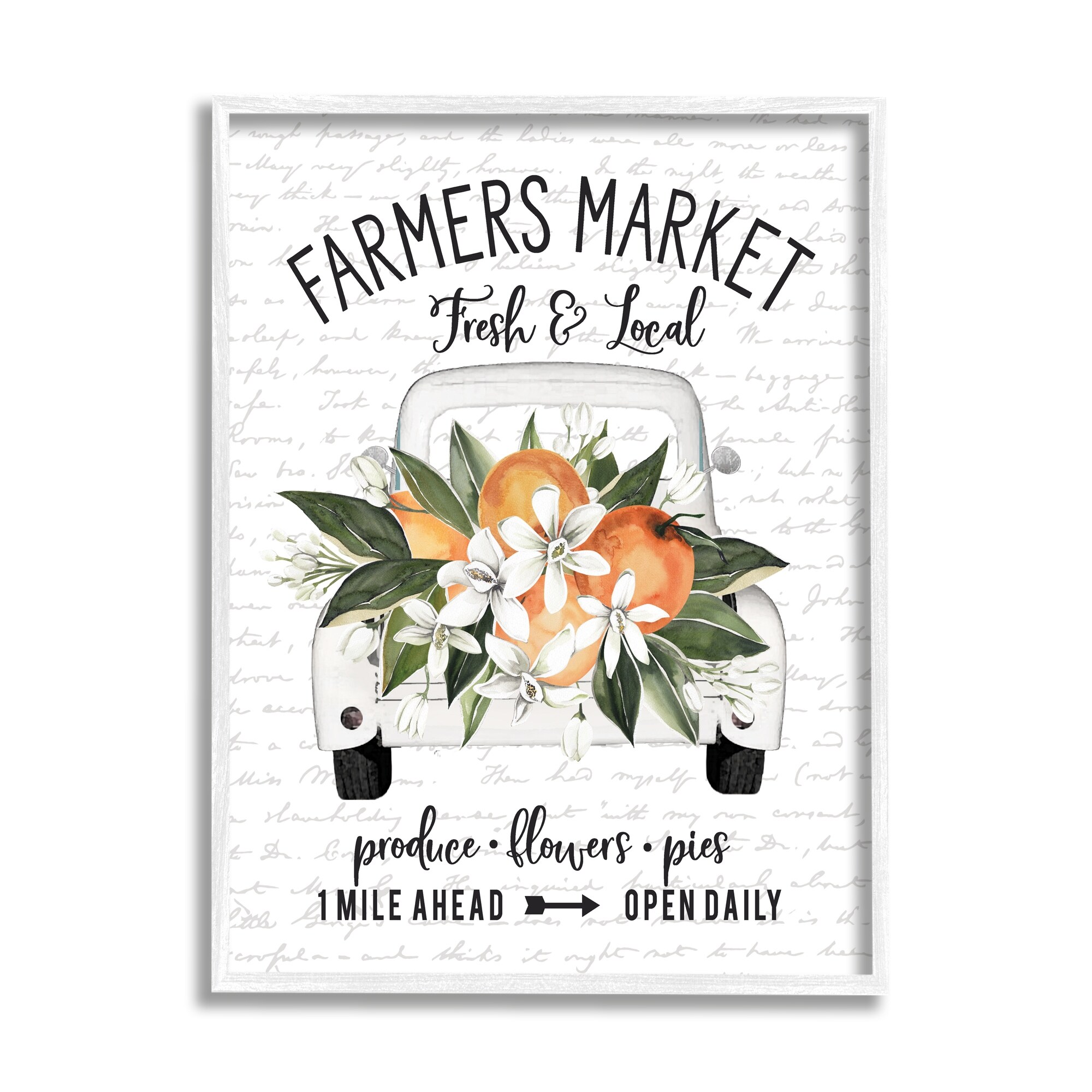 Stupell Industries Farmers Market Orange Blossom Truckload Rustic Sign Framed Wall Art, Design by Lettered and Lined