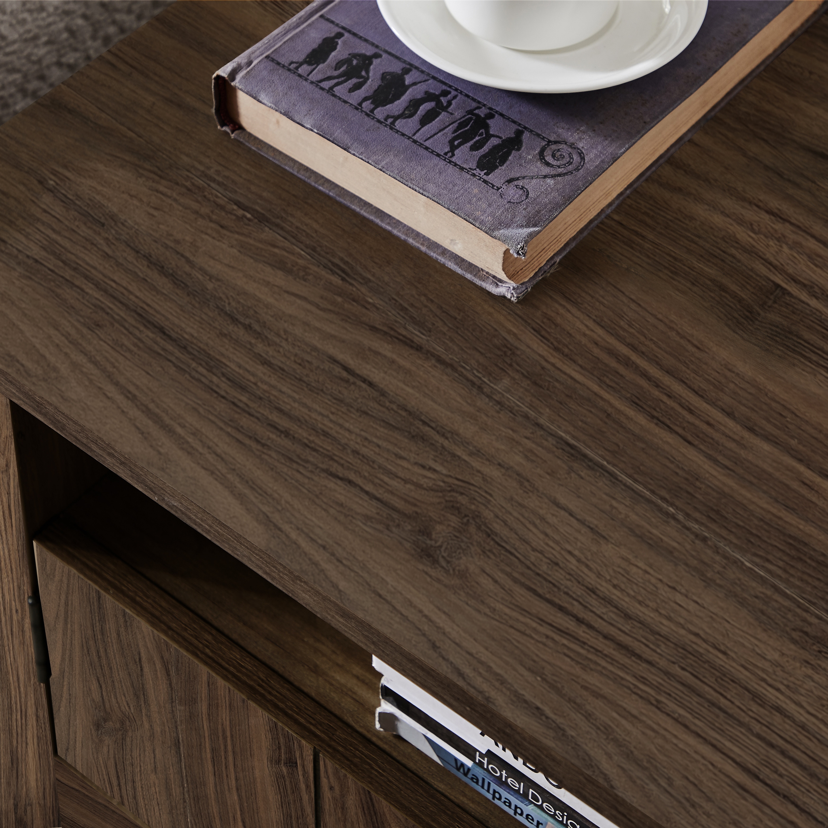 23.6" Transitional Style 1-Drawers Nightstand with Open Area, Walnut Finish and Fence Design for Bedroom, Living Room