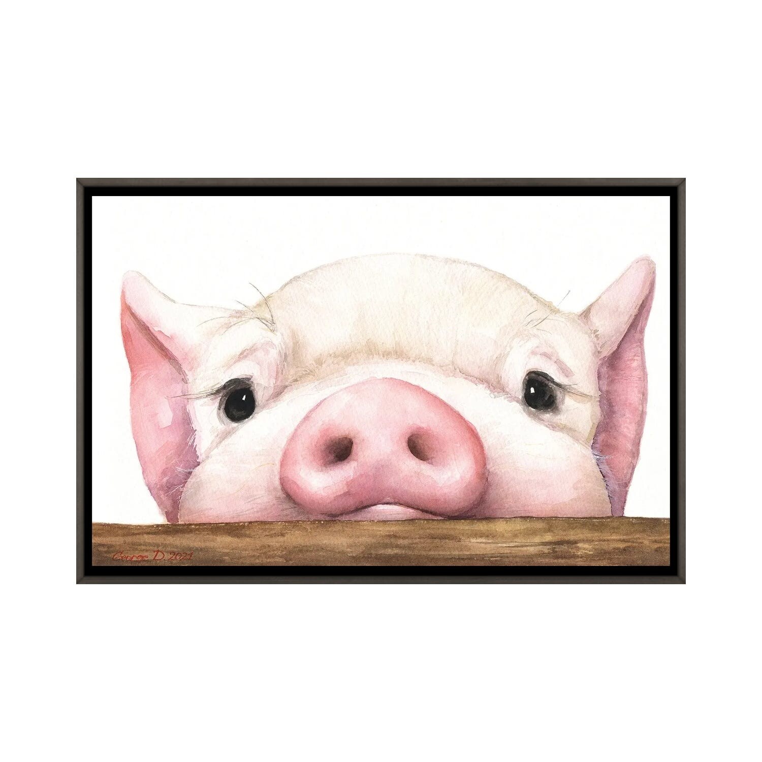 iCanvas "Piglet With Wood Fence" by George Dyachenko Framed