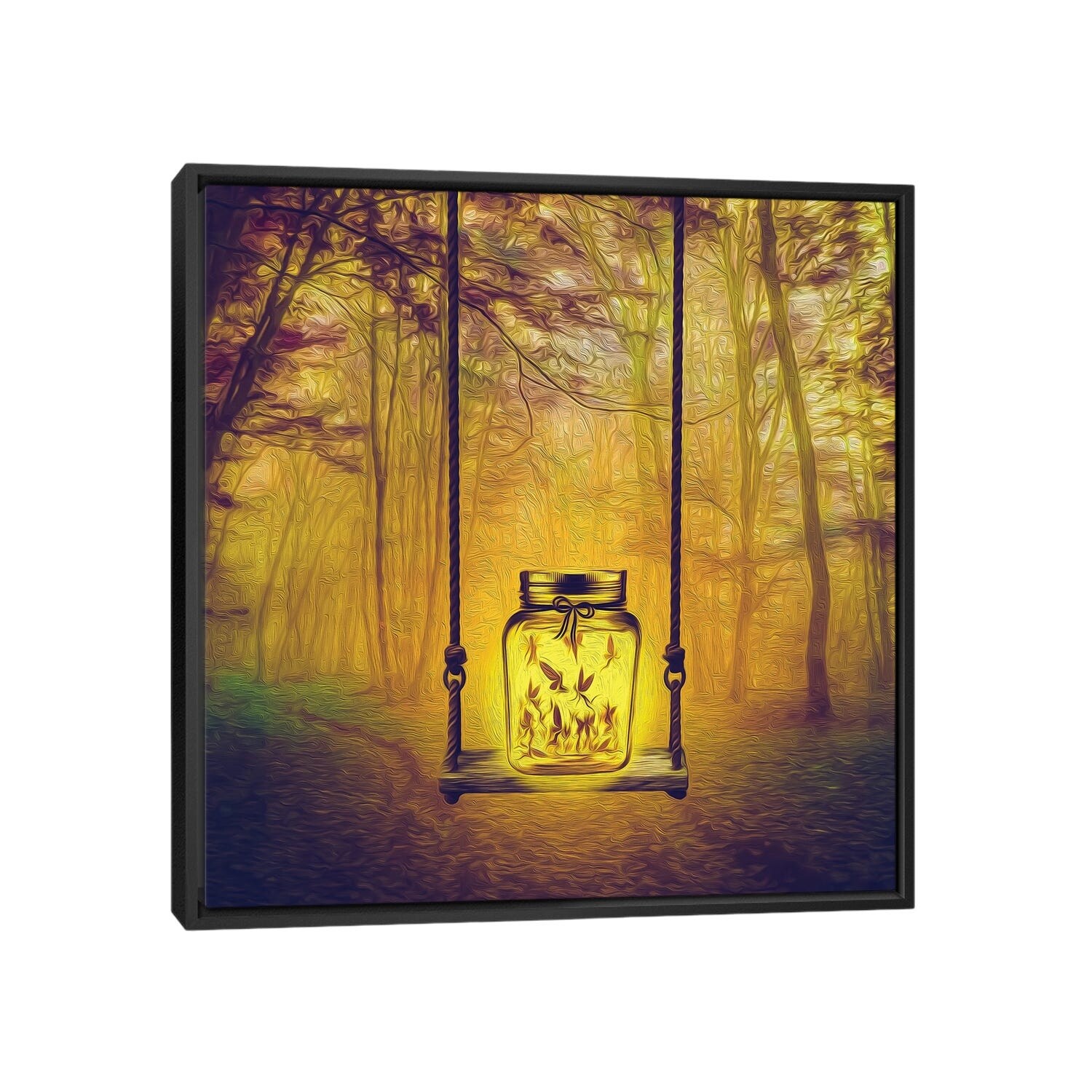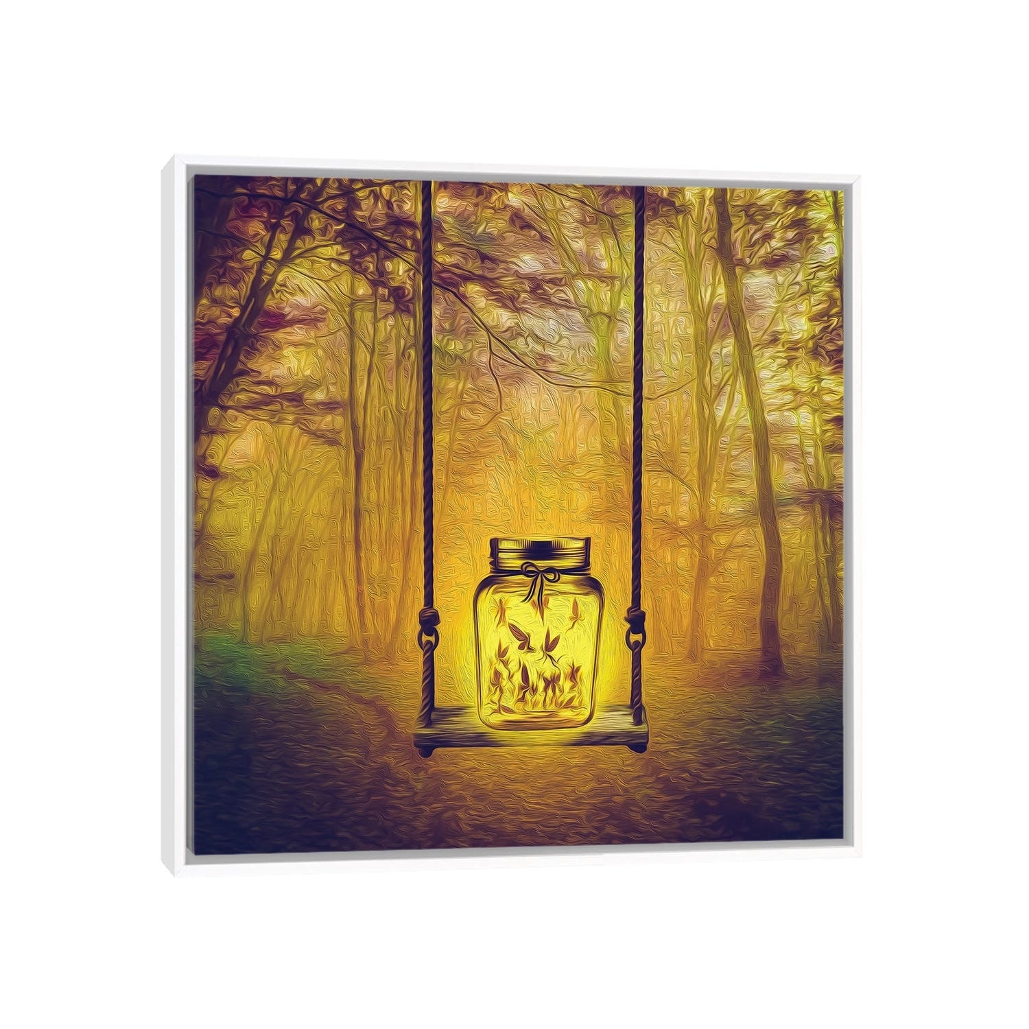 iCanvas "Firefly Fairies in A Jar in A Forest" by Ievgeniia Bidiuk Framed Canvas Print