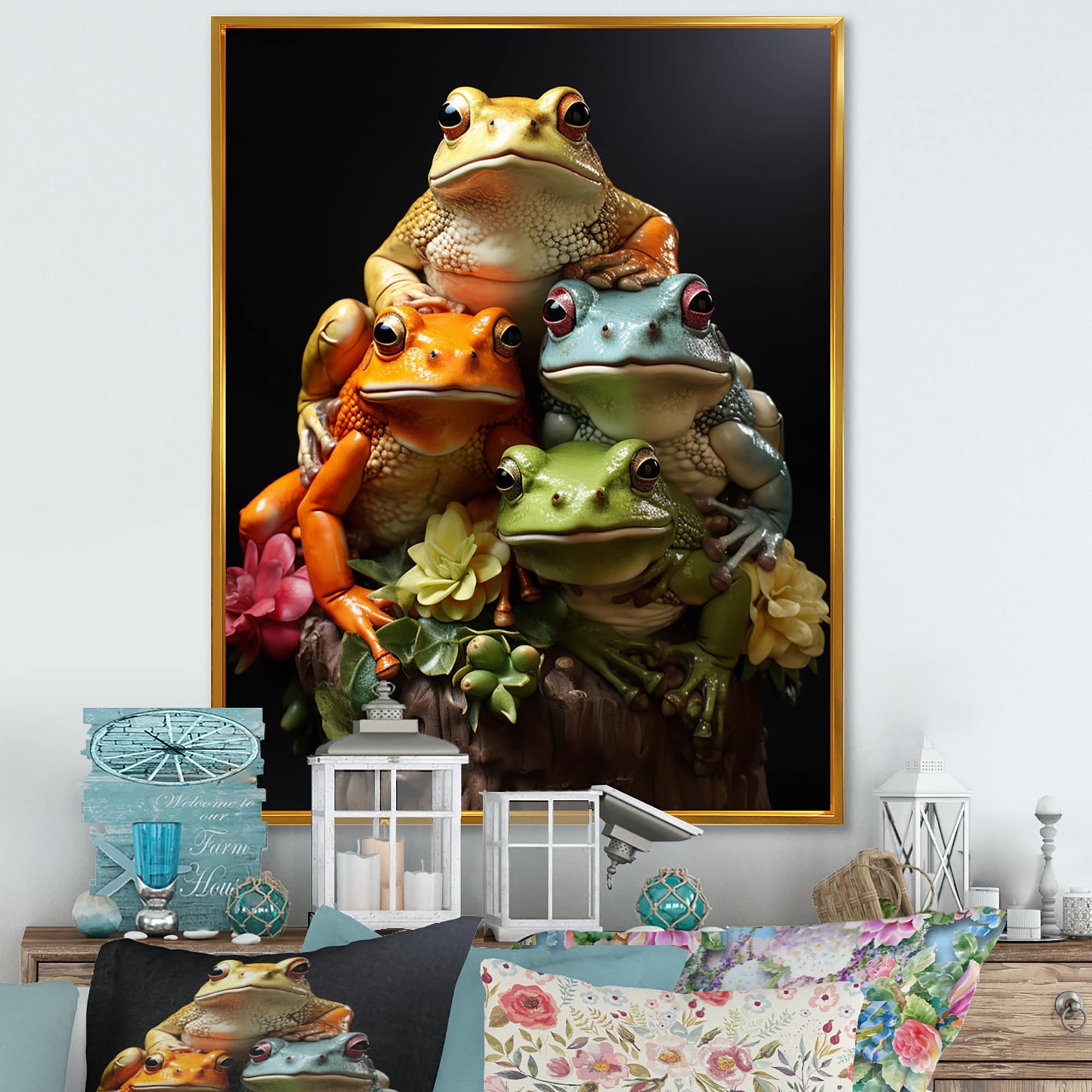 Designart "Animal Frog Family I" Frogs & Toads Framed Wall Art Living Room