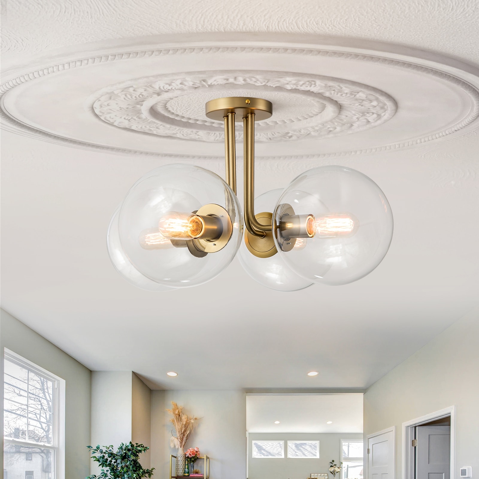 4 - Light Modern Linear Globe Glass Semi Flush Mount Ceiling Light