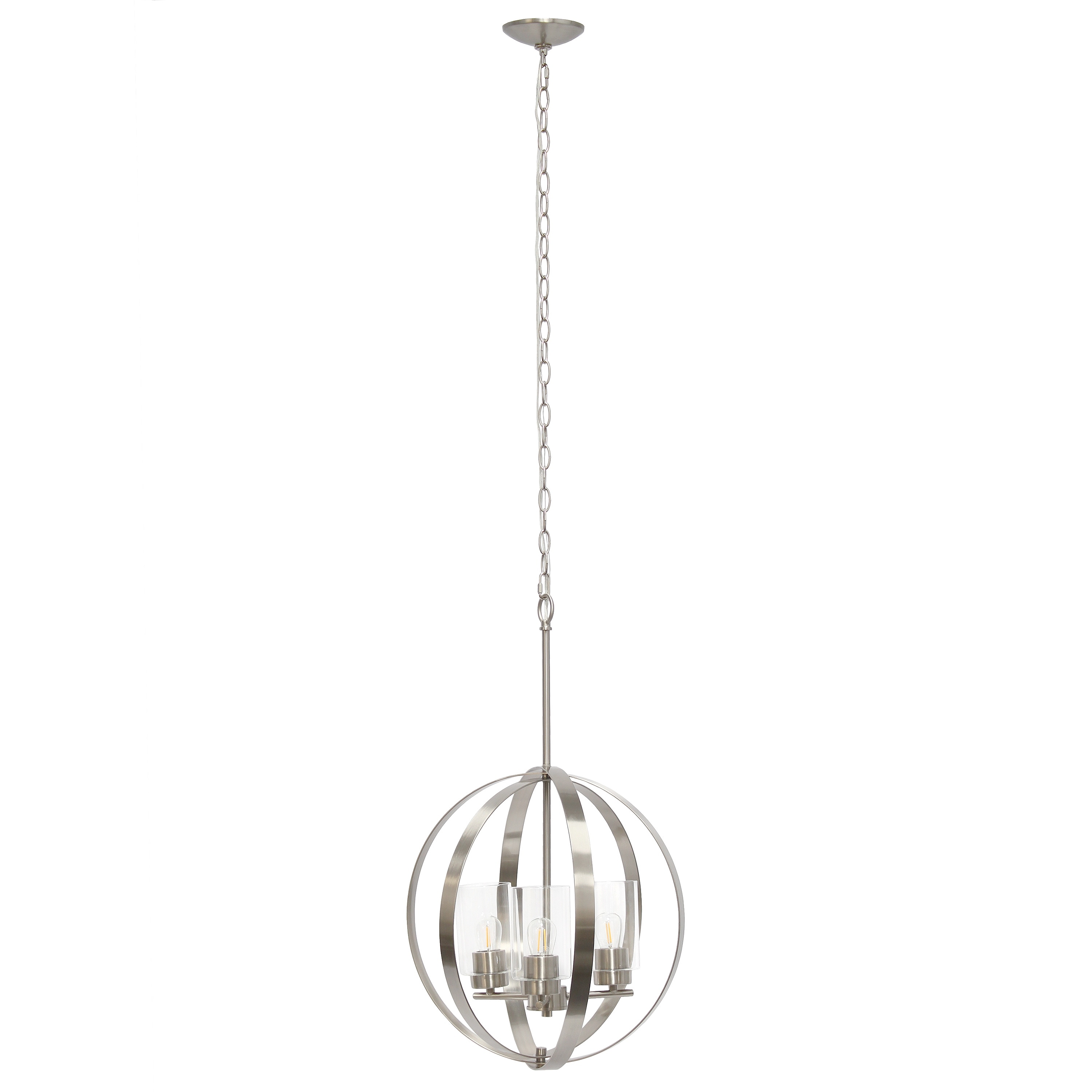 3-Light 18" Adjustable Globe Hanging Metal and Clear Glass Pendant