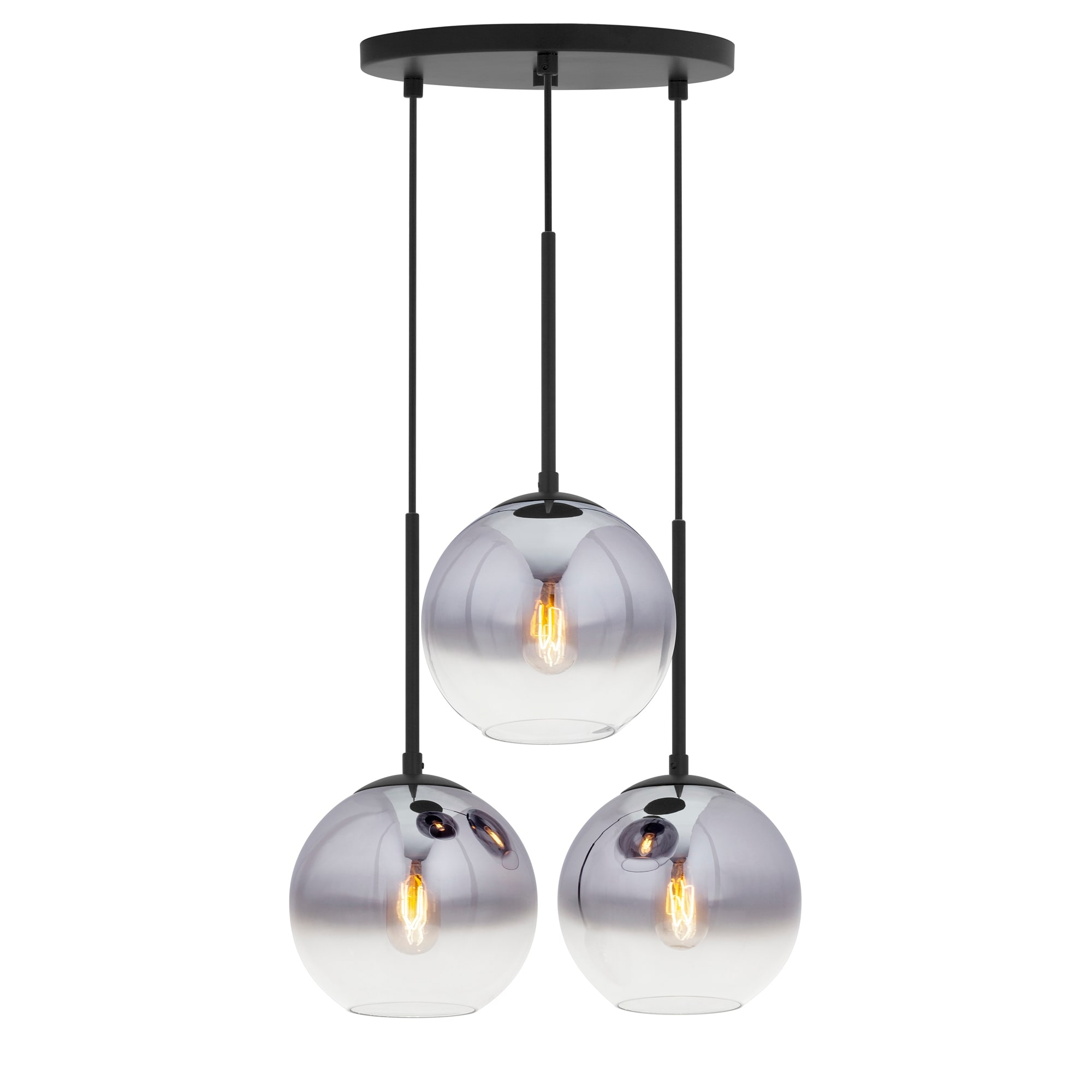 Callisto 3-Light Black Pendant with Chrome Ombre Globe Glass Shade