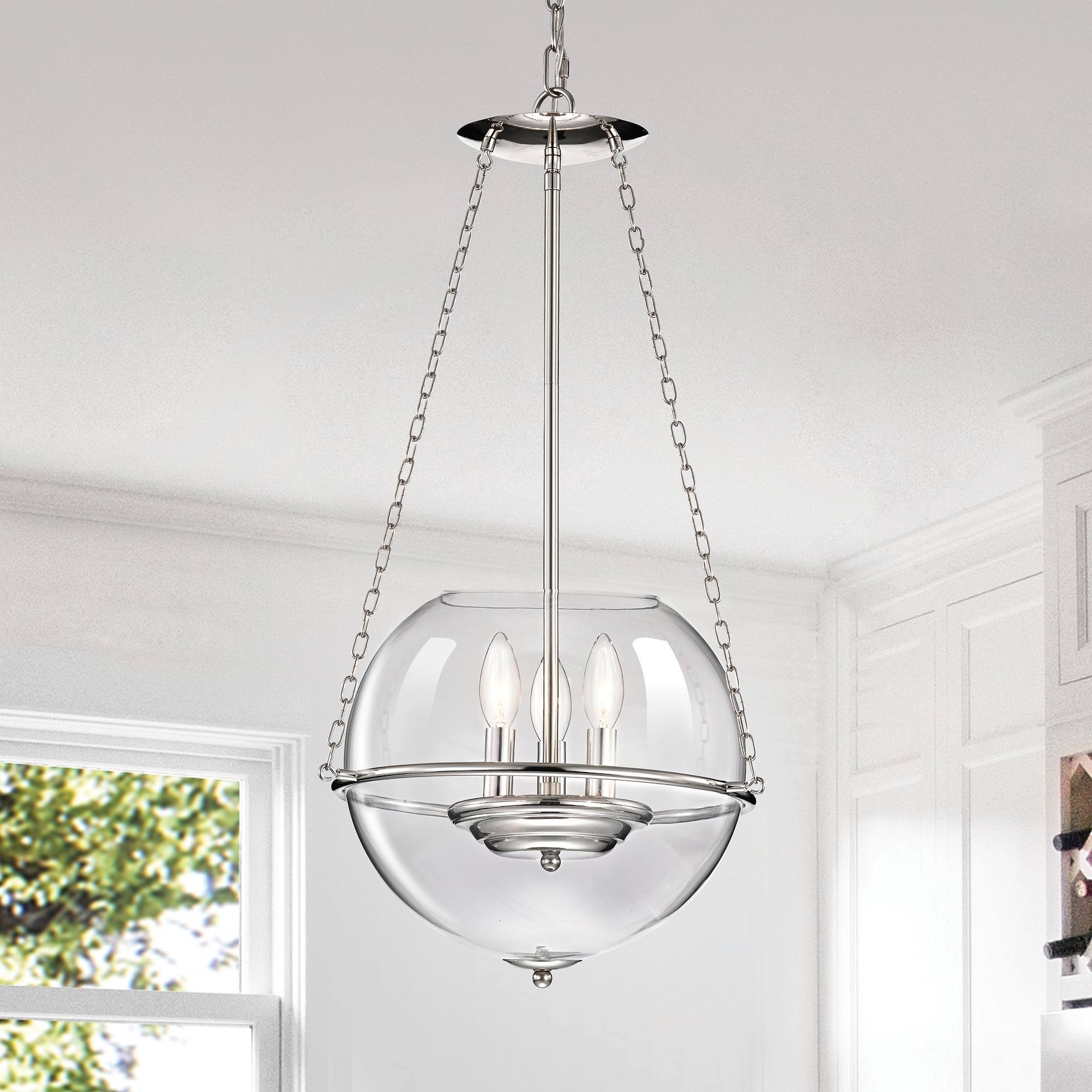 Polished Nickel 3-Light Chandelier with Globe Glass Shade