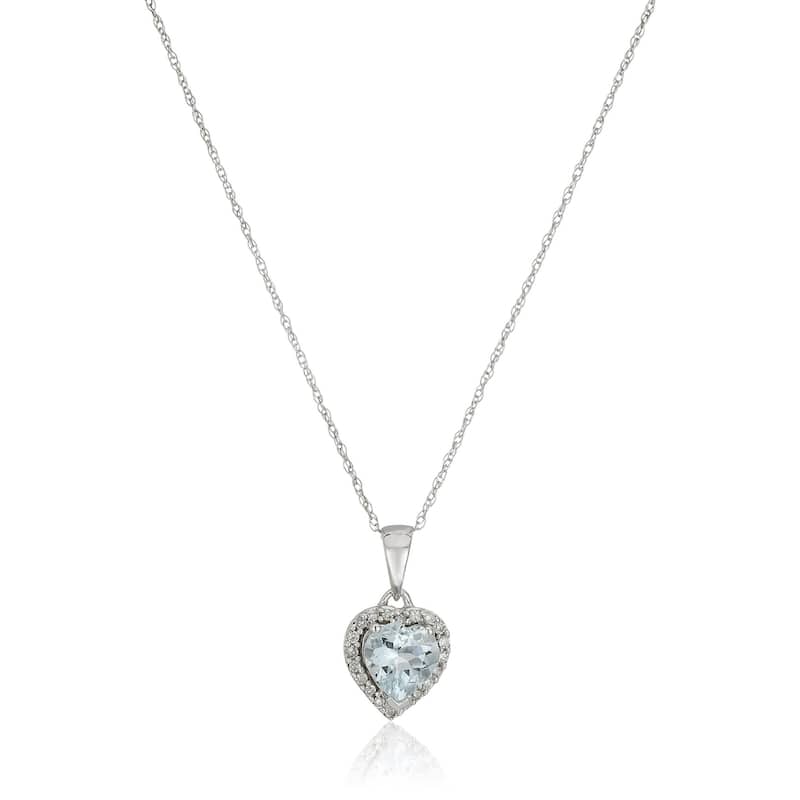 10k White Gold Aquamarine Heart, Diamond Pendant Necklace, 18" - Blue