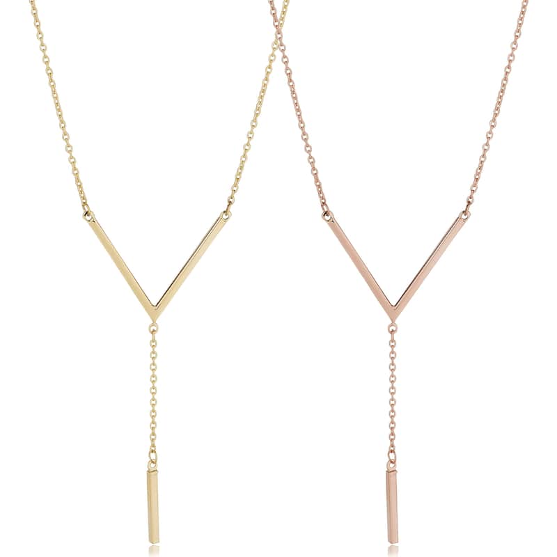 Fremada 14k Gold V and Bar Drop Necklace (fits 17 to 18 inches)