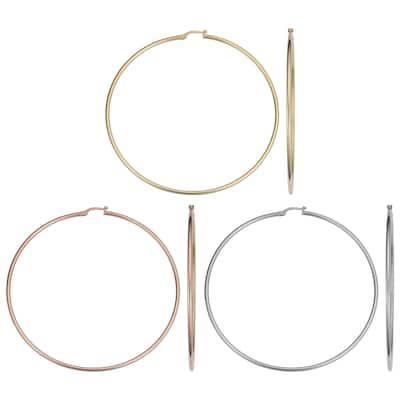 18k Yellow Gold Italian 4 millimeter Hoop Earrings (Small Or Large)