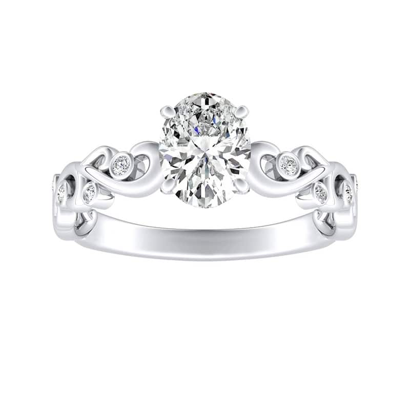 Vintage Floral Vine Halo Oval Diamond Engagement Ring 3/4ctw 18k Gold by Auriya (I-J, I1-I2)