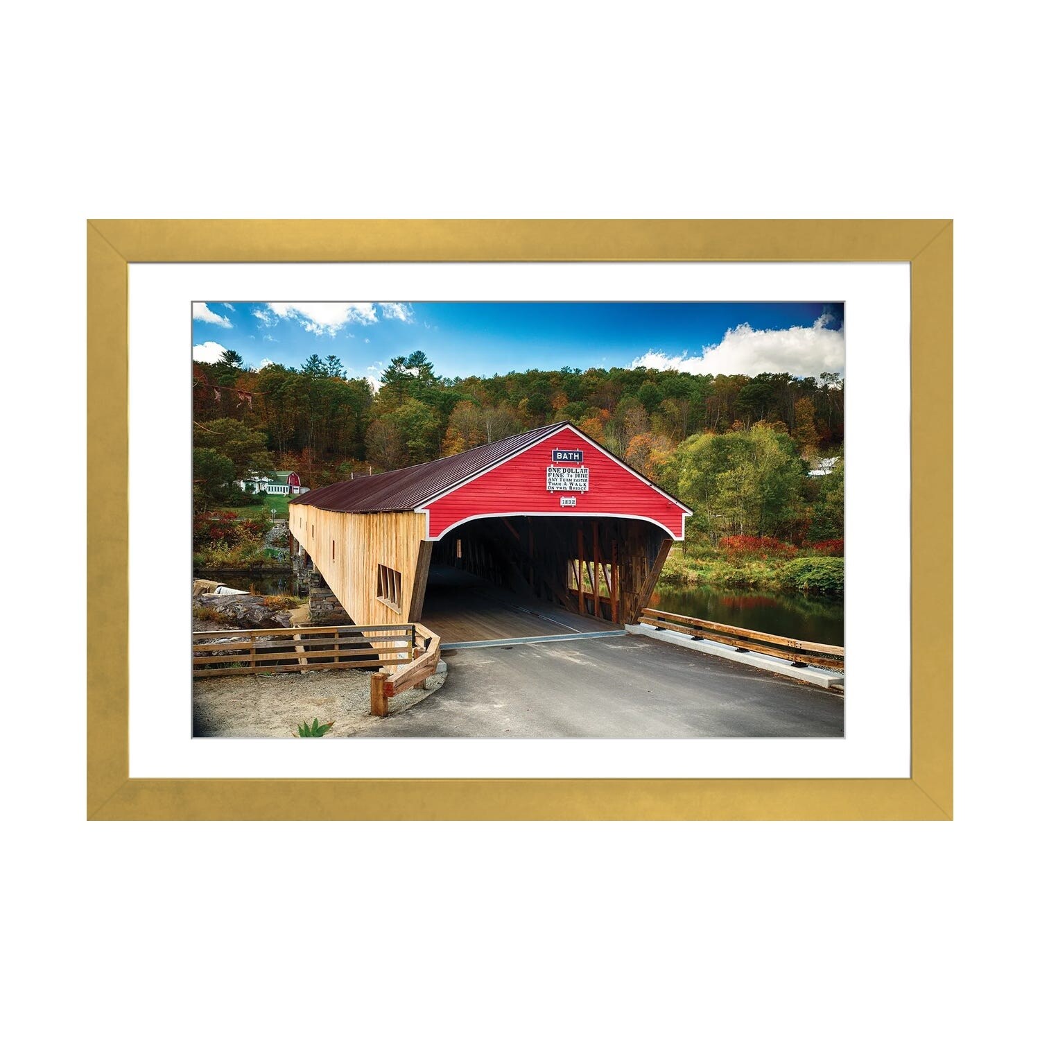 iCanvas "Covered Bridge over the Saco River, Conway, New Hampshire" by George Oze Framed Canvas Print