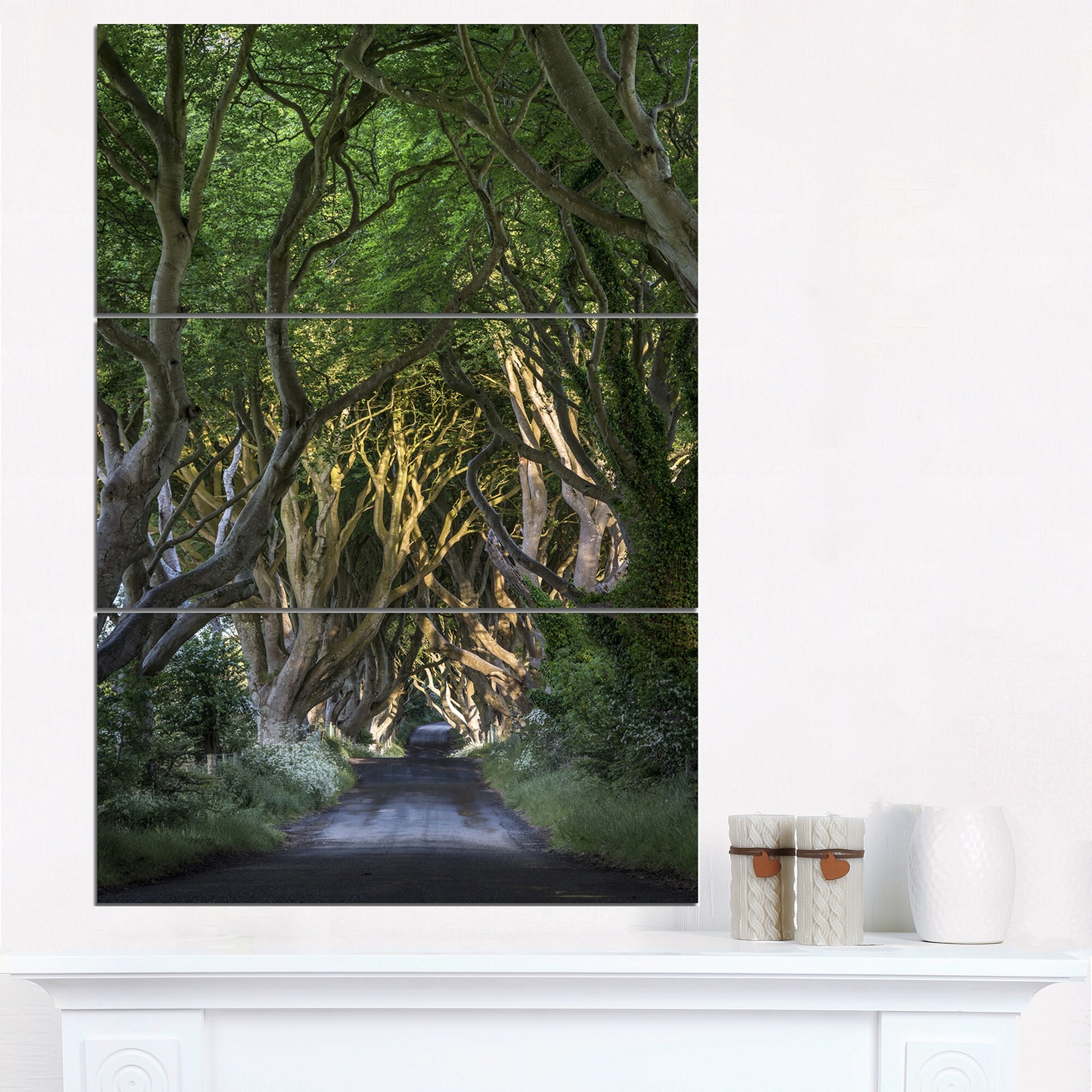 Designart "The Dark Hedges" Landscape Photography Canvas Art Print - 28x36 - 3 Panels