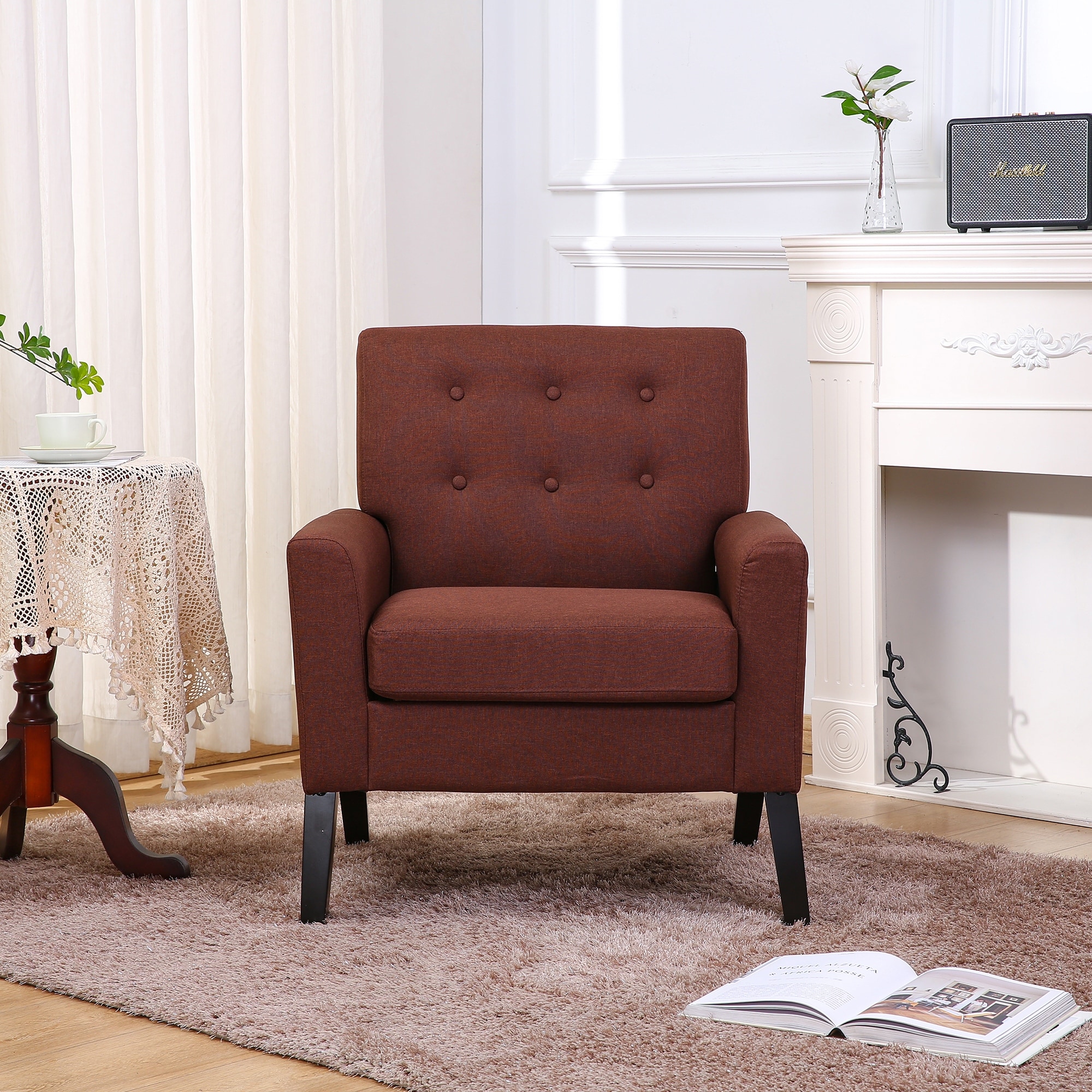 Fabric Single Person Sofa Chair with High-Density Soft Cushion and Comfortable Backrest (Brown)