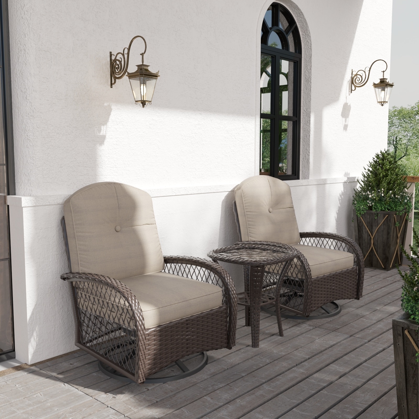 S.Fyronti Patio High-Density PE Wicker 2 - Person Rocking Swivel Seating Group with Cushions and End Table
