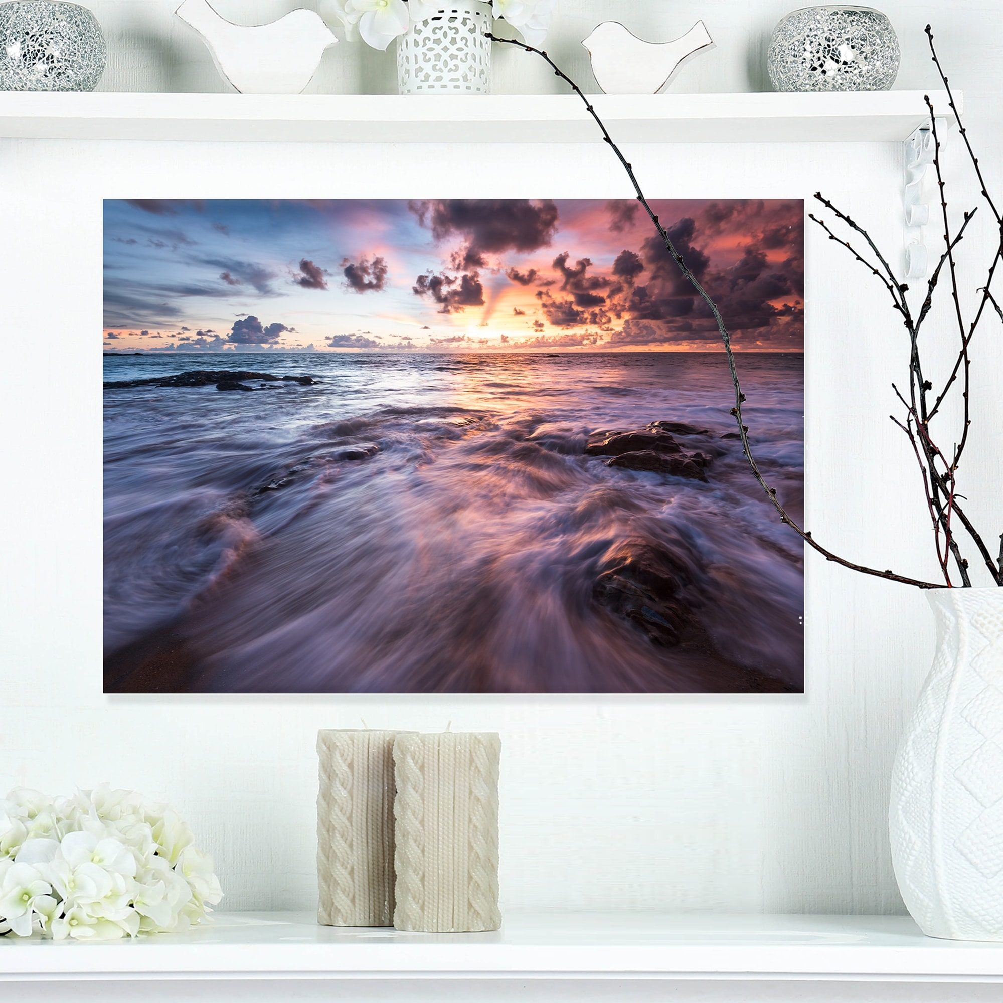Designart "Waves Hitting Rocky Beach" Beach Photo Canvas Print