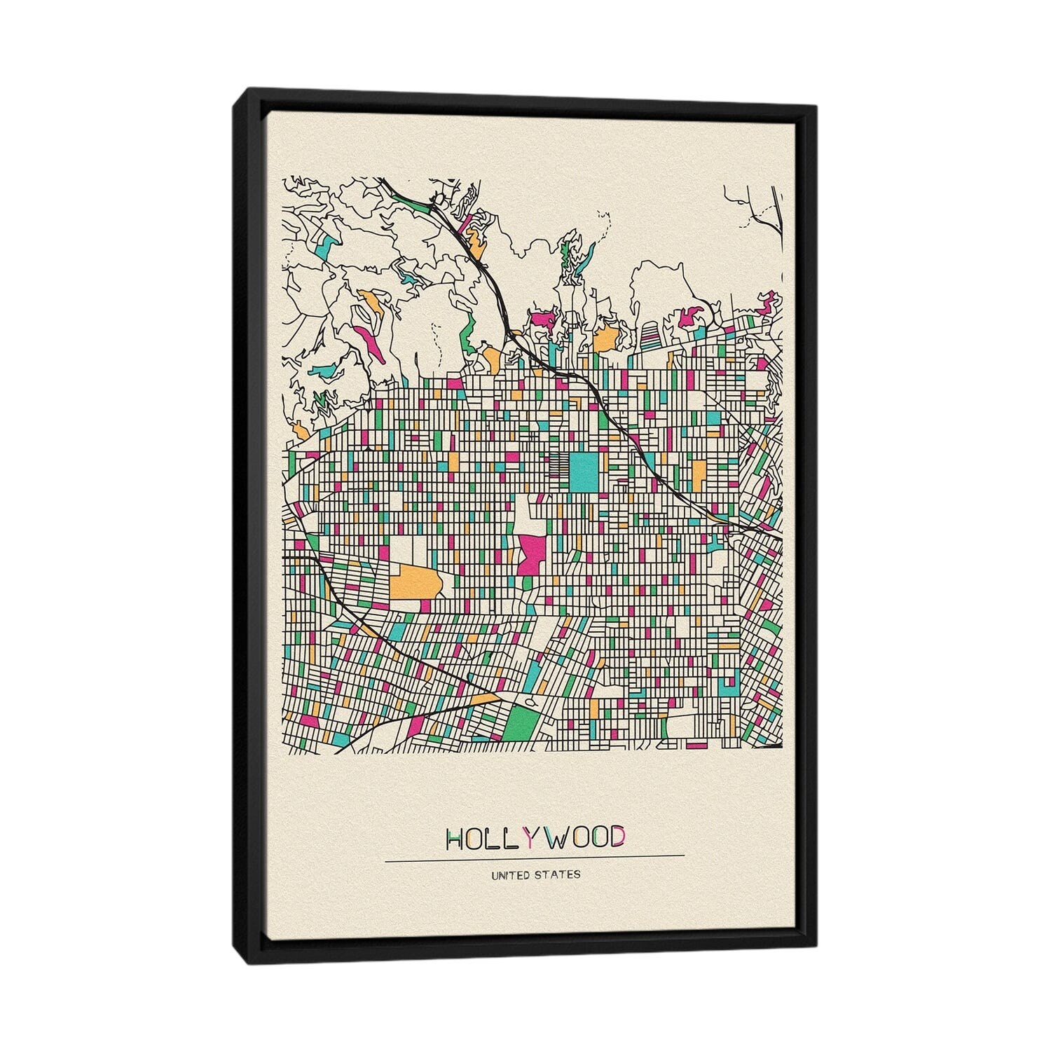 iCanvas "Hollywood, Los Angeles Map" by Ayse Deniz Akerman Framed