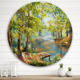 Designart 'Autumn Forest With Meandering River' Lake House Metal Circle Wall Art