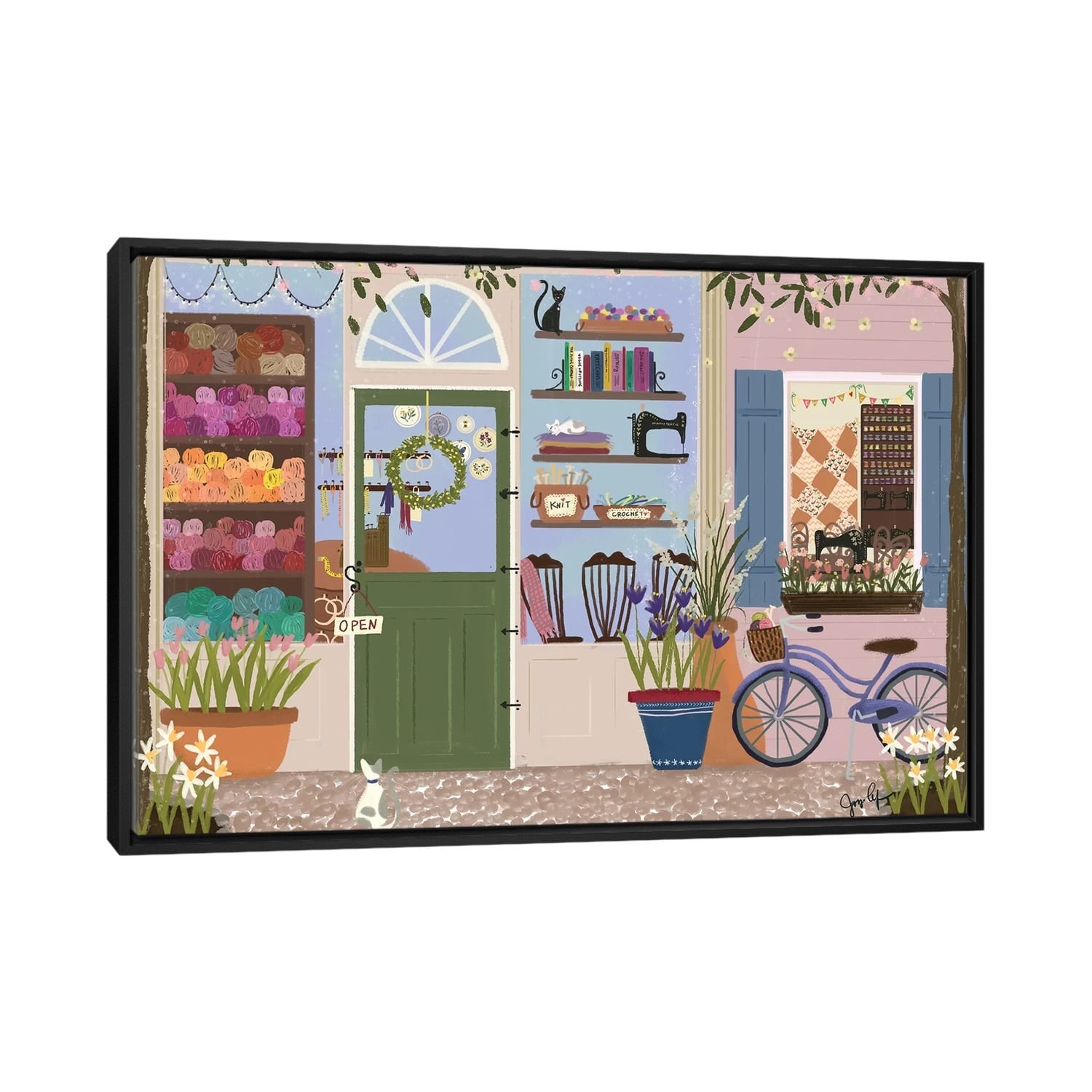iCanvas "Stitcherie Shop Storefront" by Joy Laforme Framed Canvas Print
