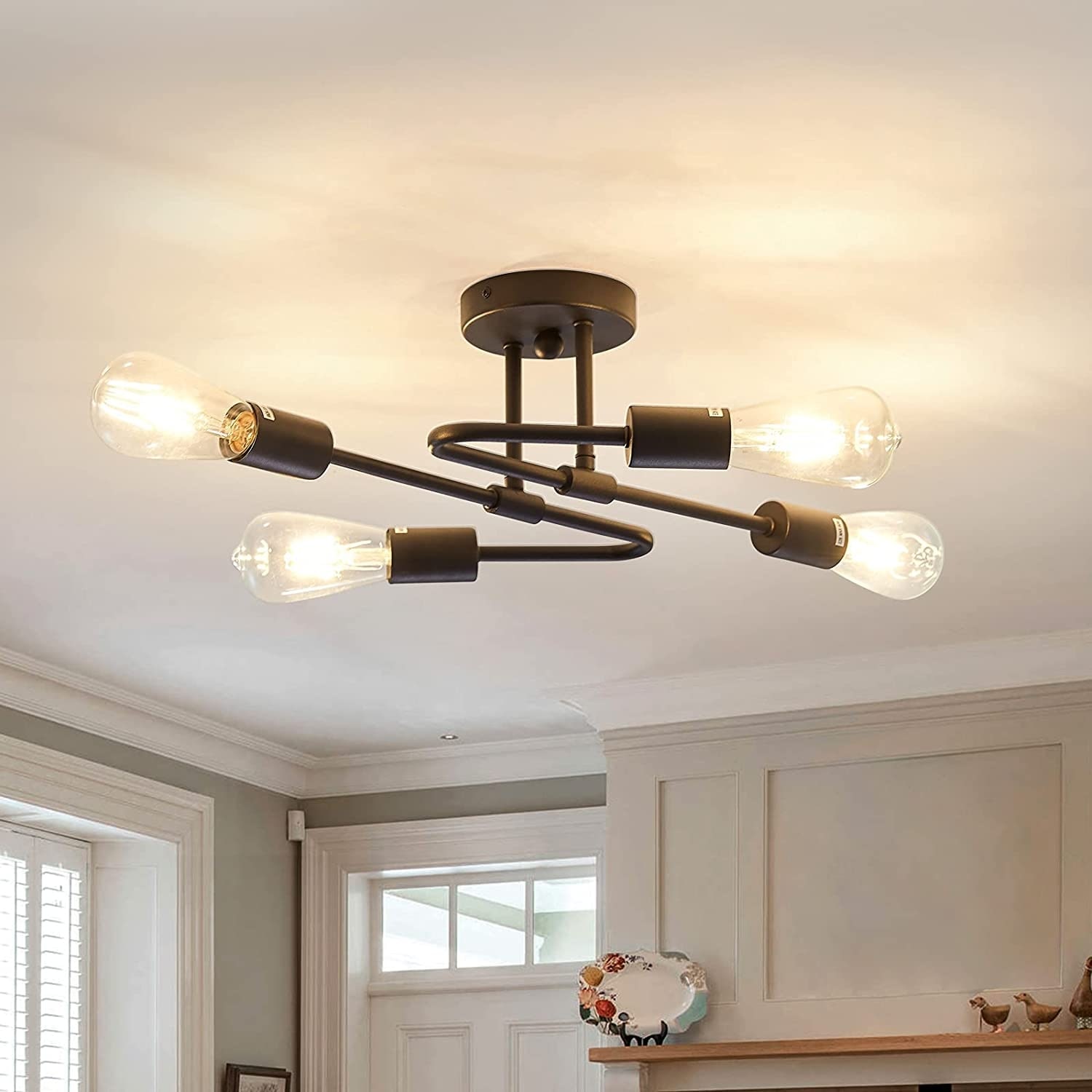 Industrial 4 light semi flush mount ceiling light fixture black ceiling lamp