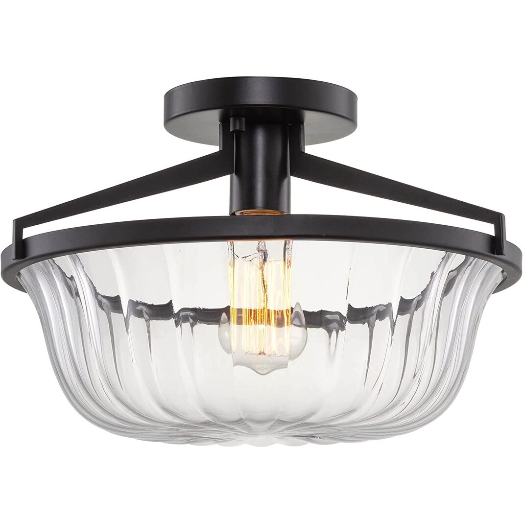 14 inch farmhouse semi flush mount ceiling light black frame ceiling lamp with glass shade