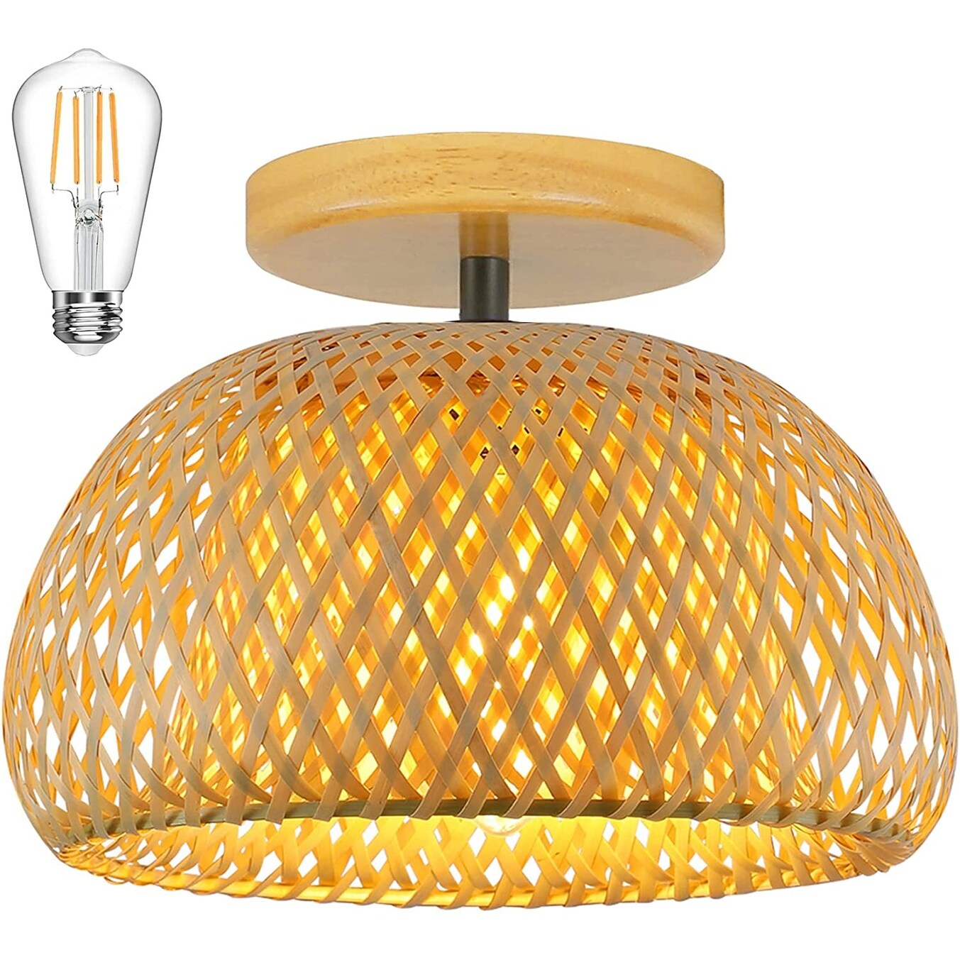 Bamboo semi flush mount ceiling lamp boho ceiling light fixture