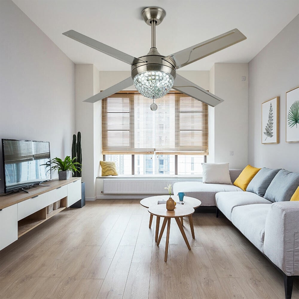 44" Crystal Ceiling Fan Lamp Light LED Chandelier with Remote Control - 44" x 18.3"