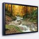Designart "Forest Waterfall with Yellow Trees" Large Landscape Framed Canvas Art Print