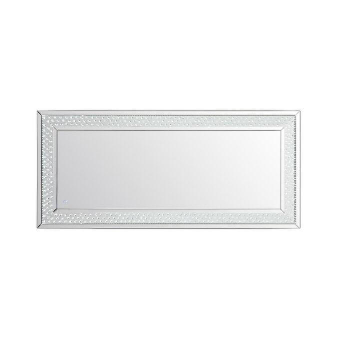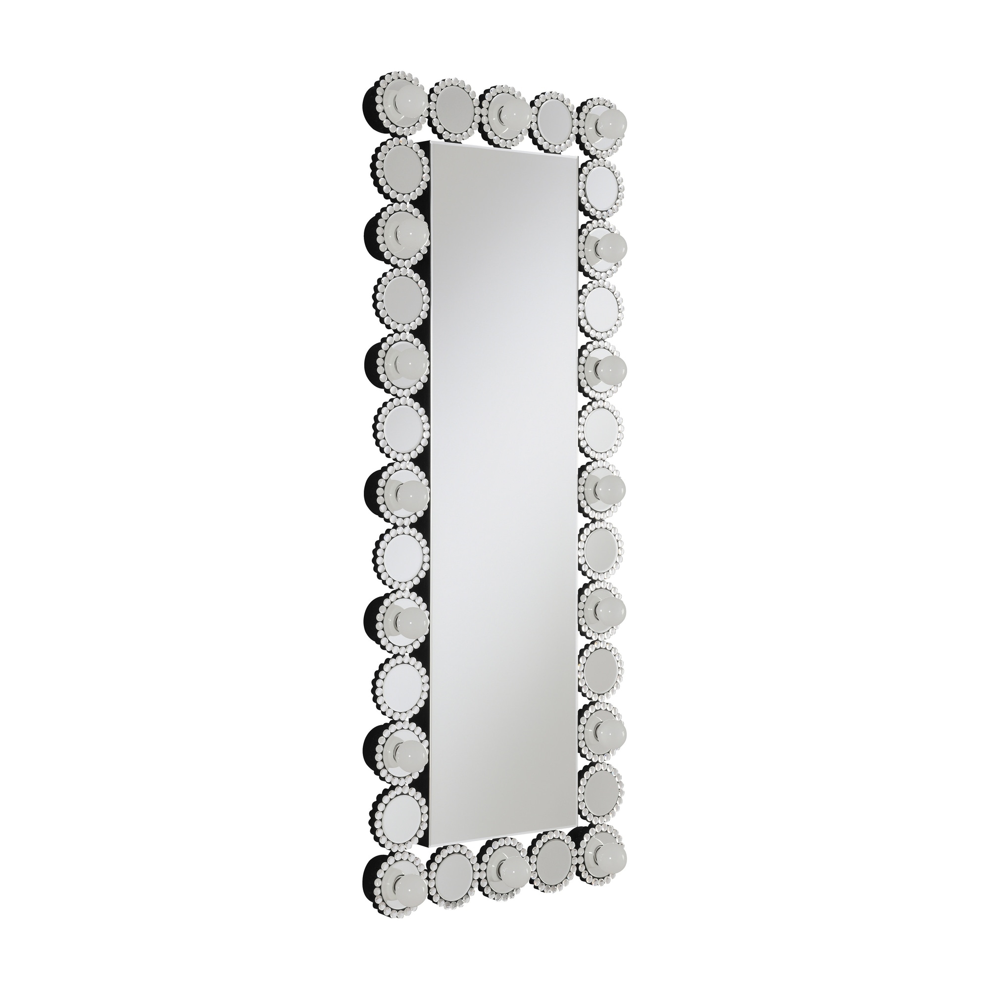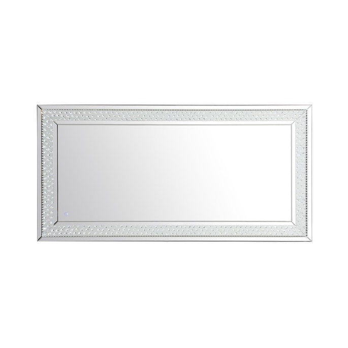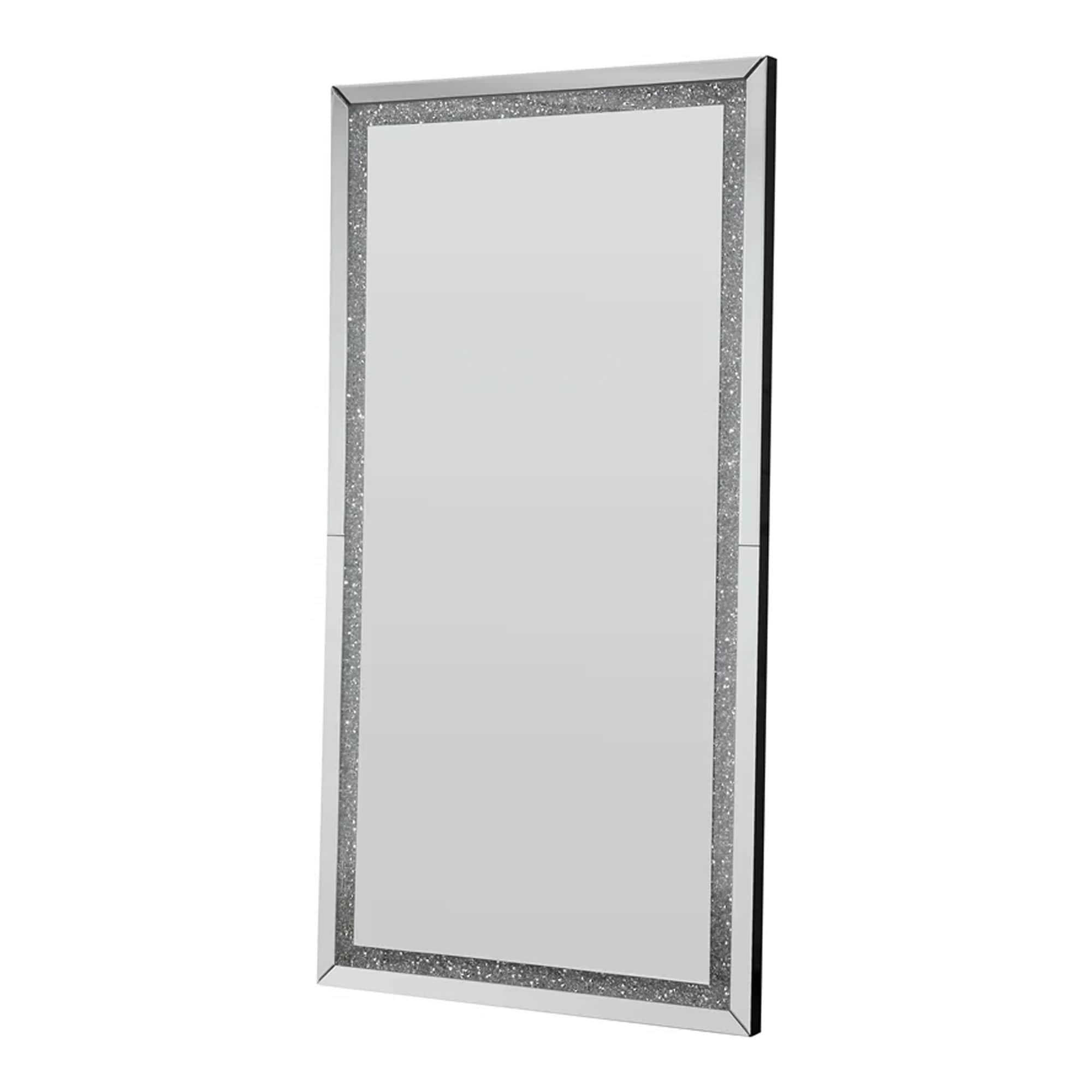 Floor Mirror with Faux Diamond Inlays and LED Trim, Silver