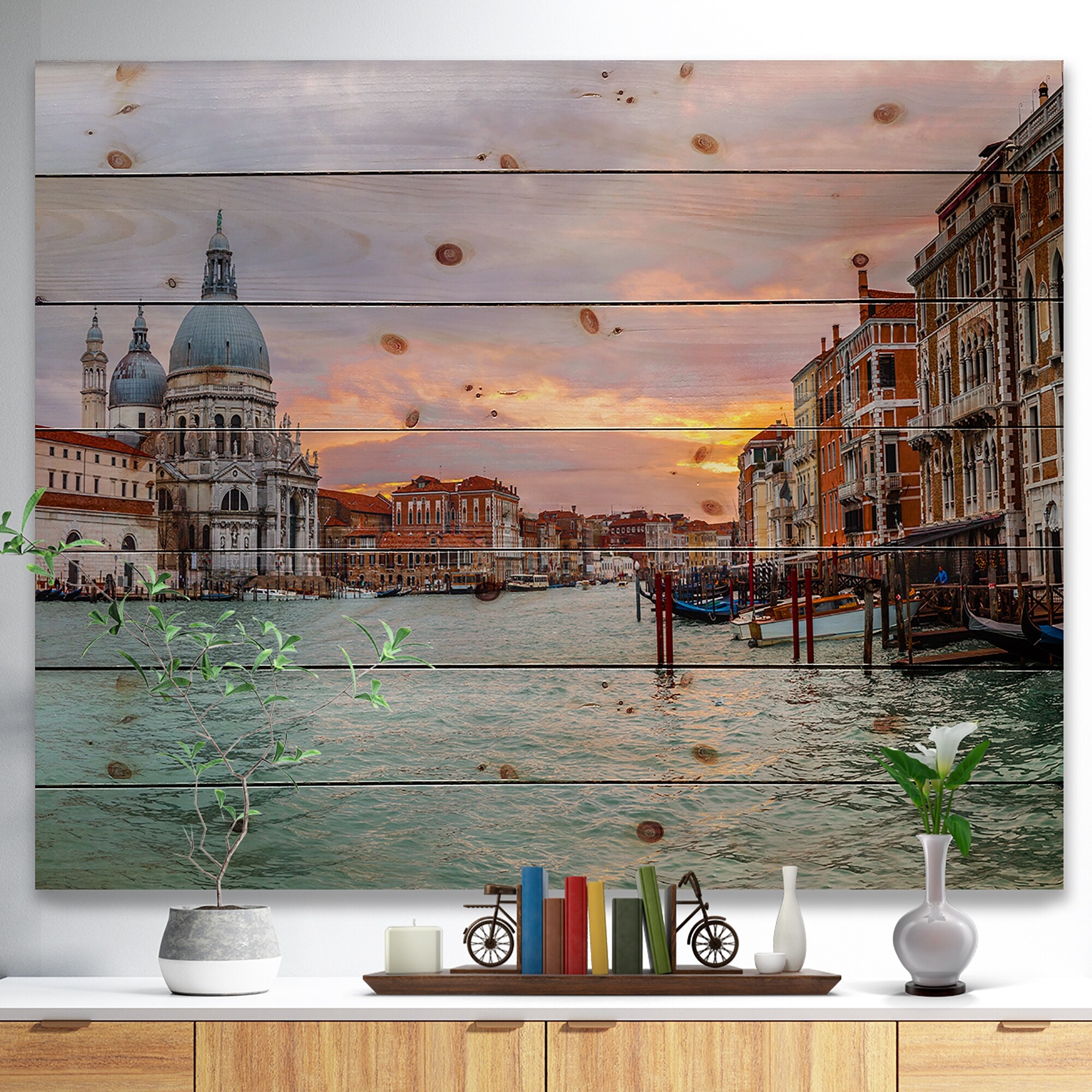 Designart 'Santa Maria Della Salute' Cityscape Print on Natural Pine Wood - Multi-color