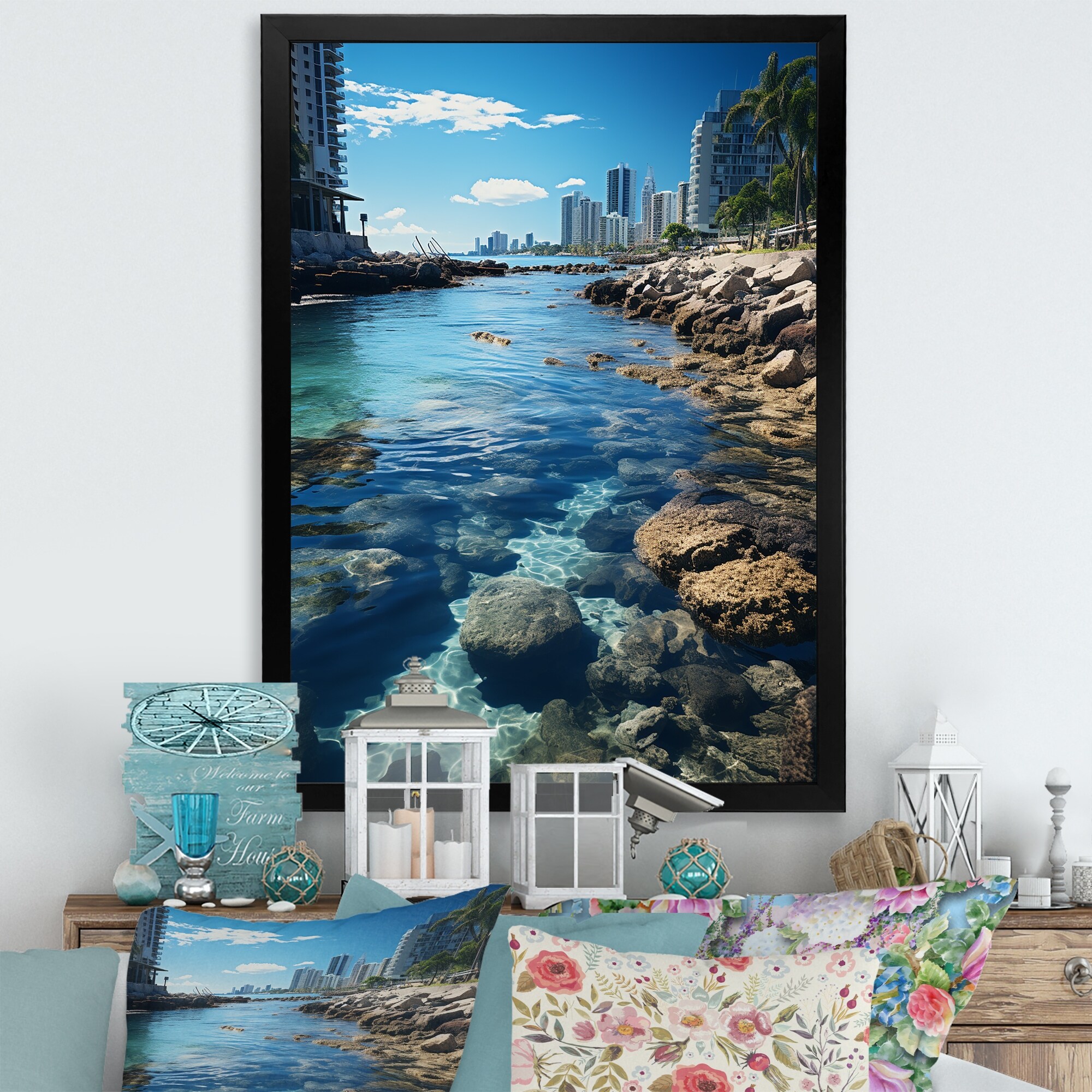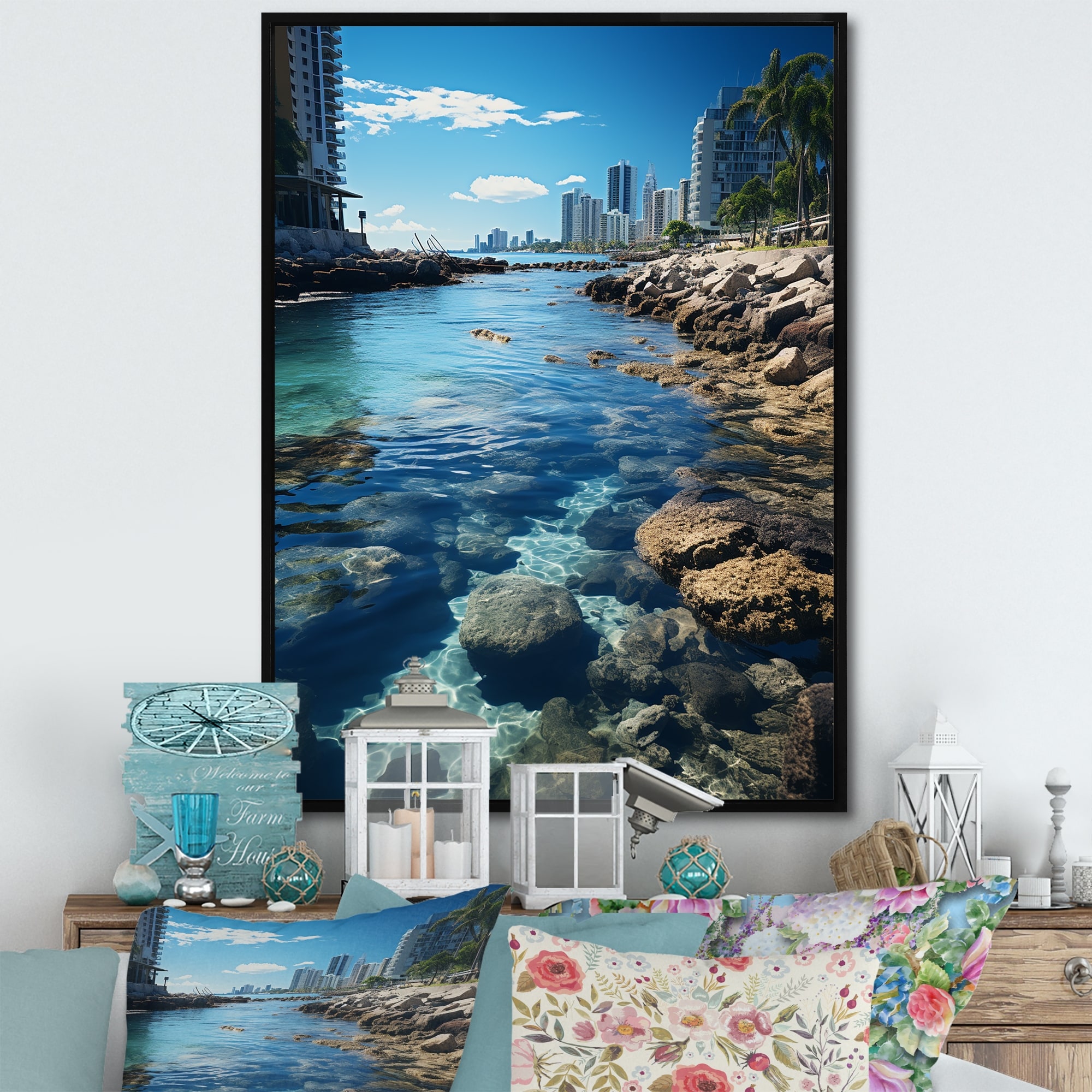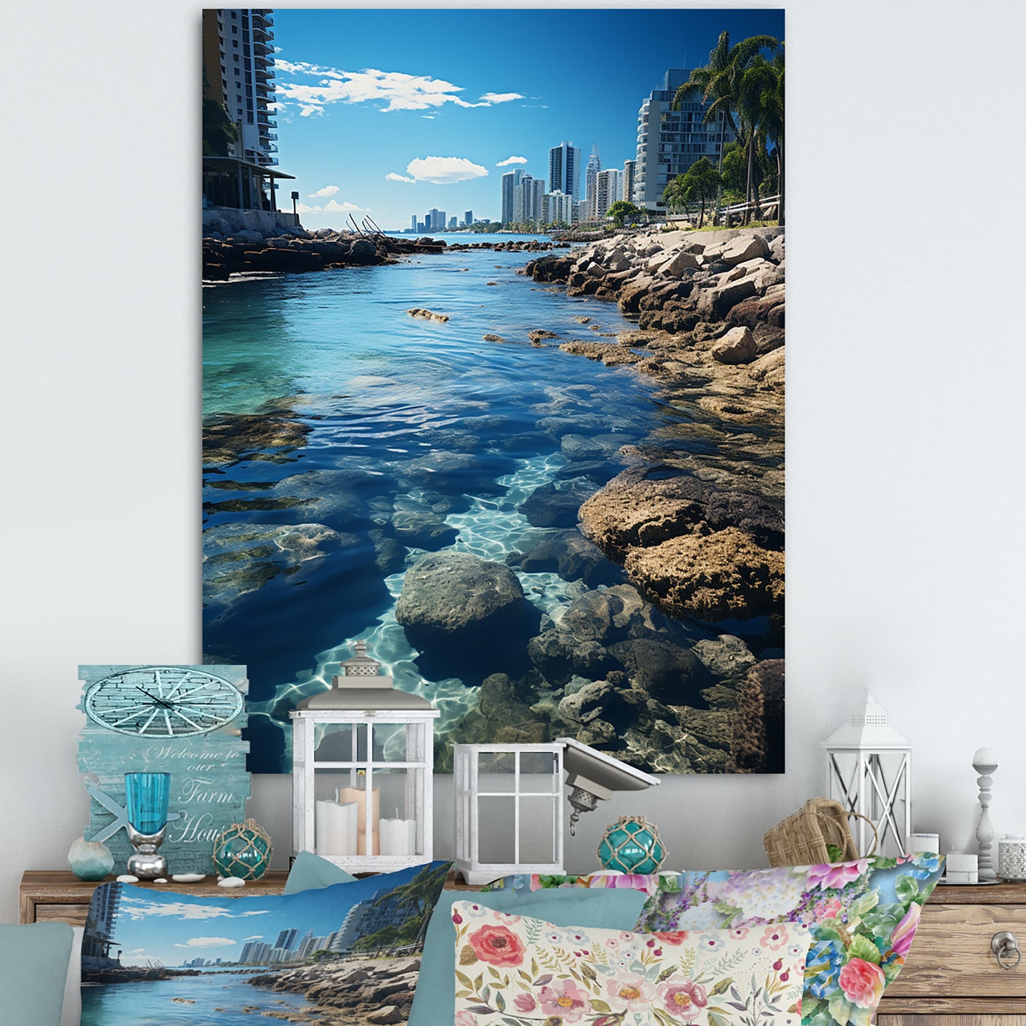 Designart "Turquoise Grey Miami Coastal Resilience" City Miami Wall Decor
