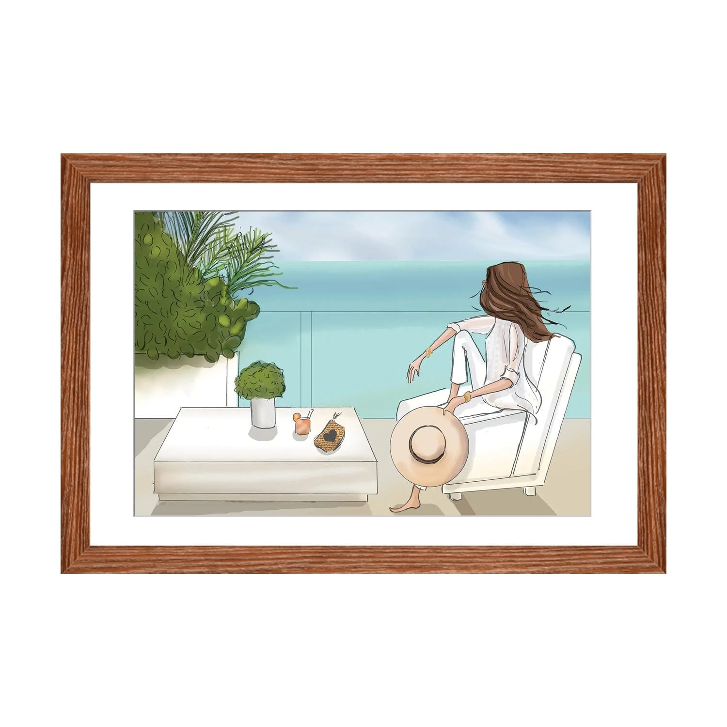 Illustrated Miami Beach I -Framed Print w/glass-Cherry Red