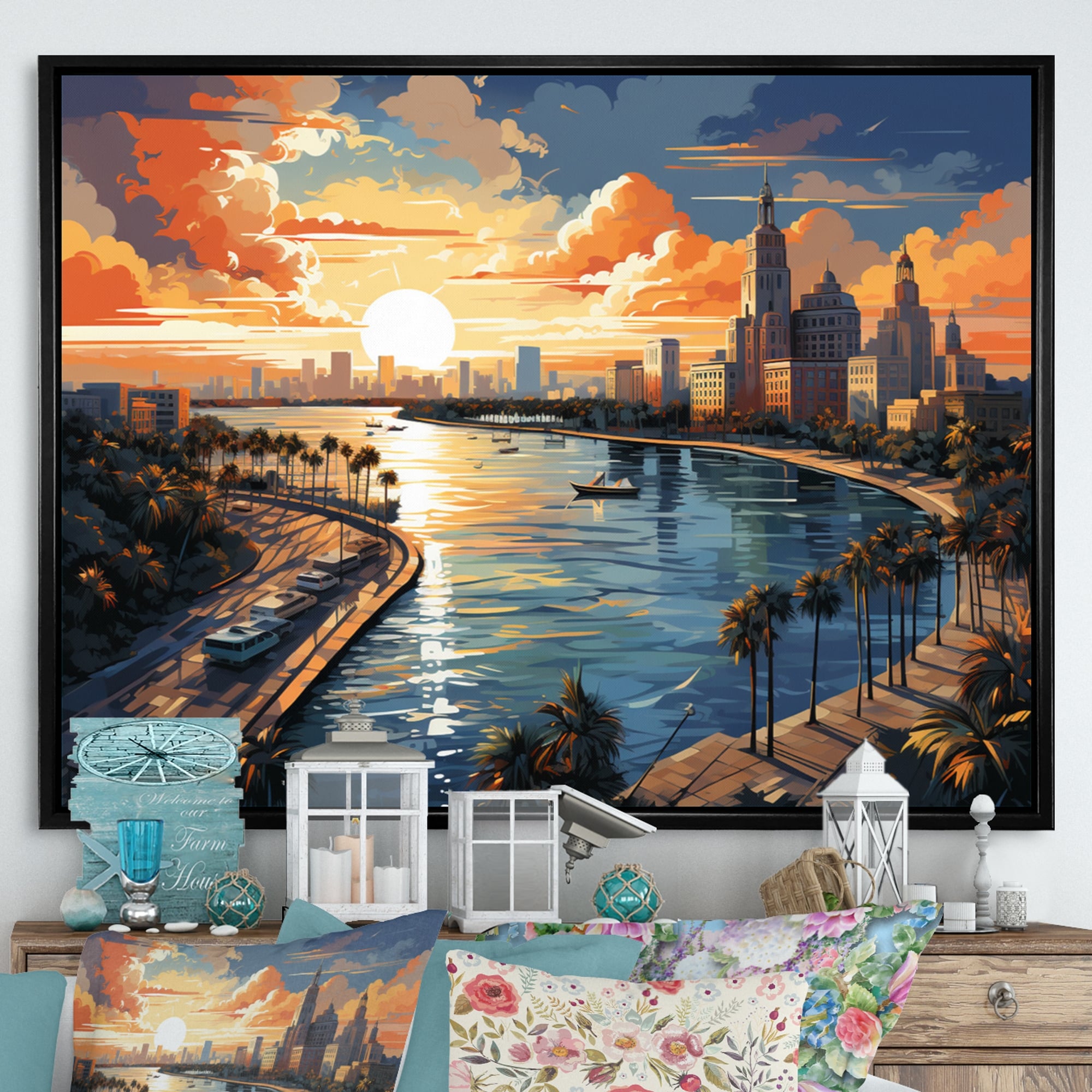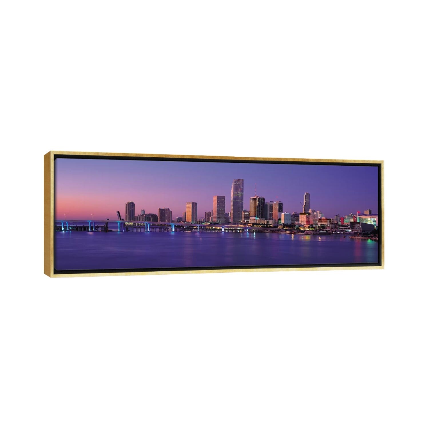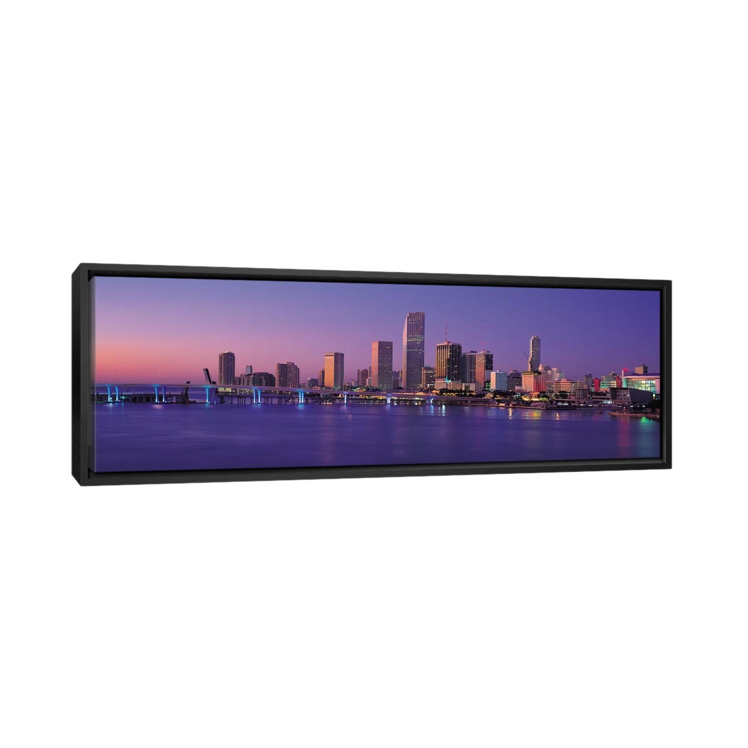 iCanvas "Miami Panoramic Skyline Cityscape (Evening)" by Unknown Artist Framed Canvas Print