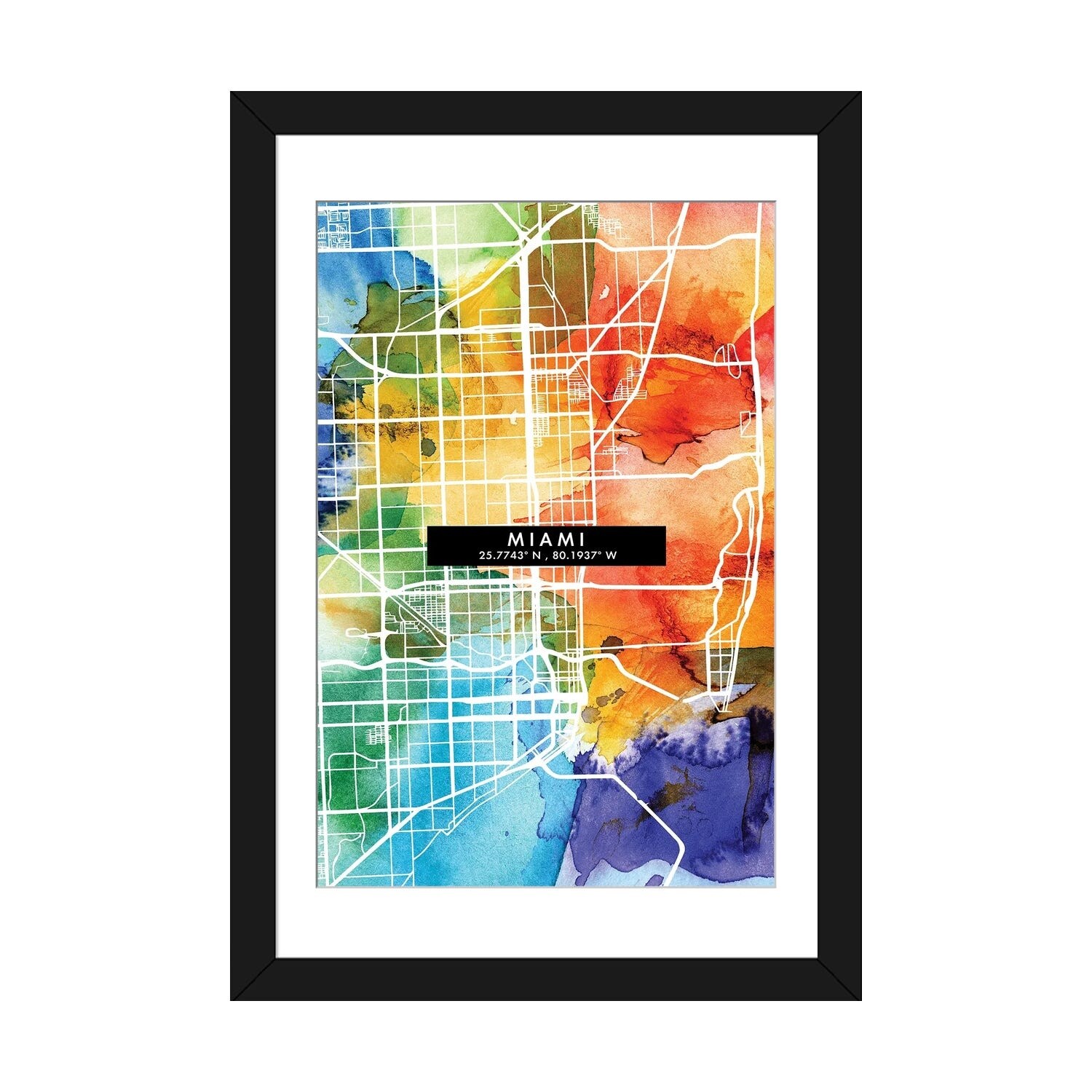 iCanvas "Miami City City Map Colorful Watercolor Style" by WallDecorAddict