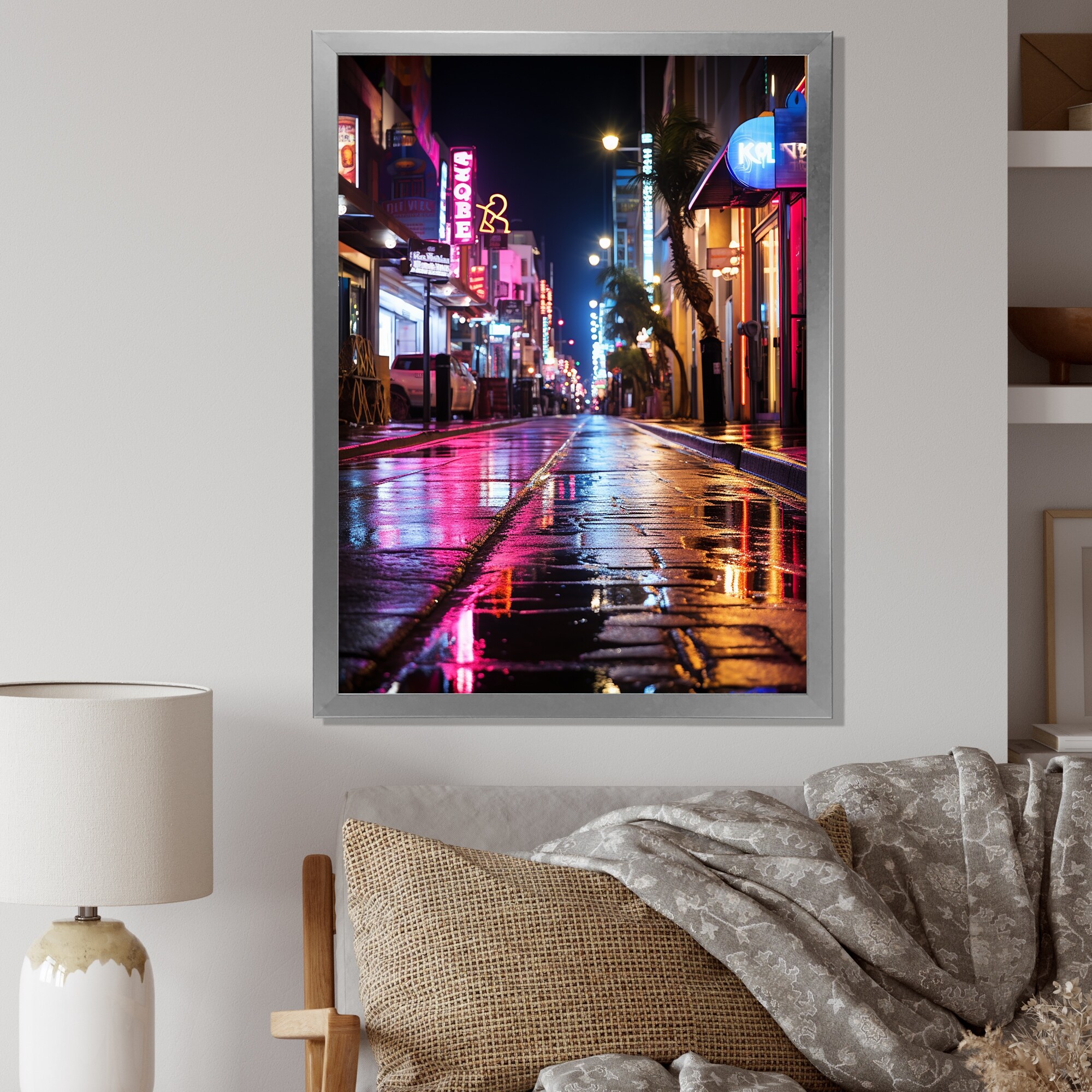Designart "Miami Ocean Drive Neon" Florida Framed Canvas Prints