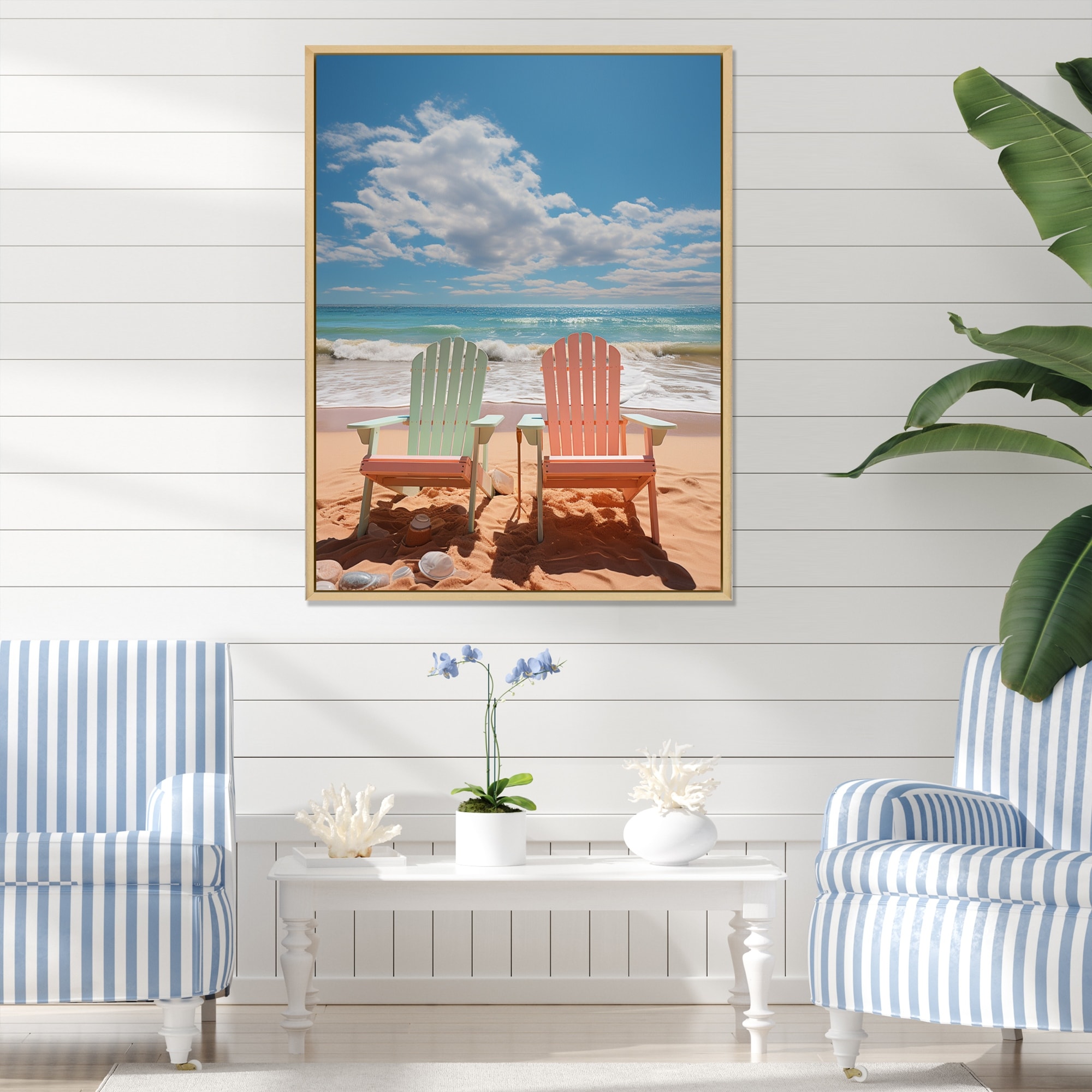 Designart "Pink Miami Chairs II" Beach Framed Wall Decor