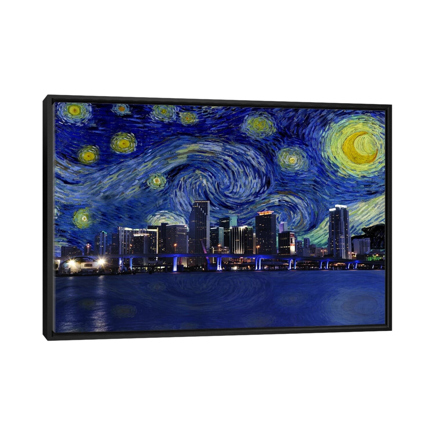 iCanvas "Miami, Florida Starry Night Skyline" by 5by5collective Framed Canvas Print