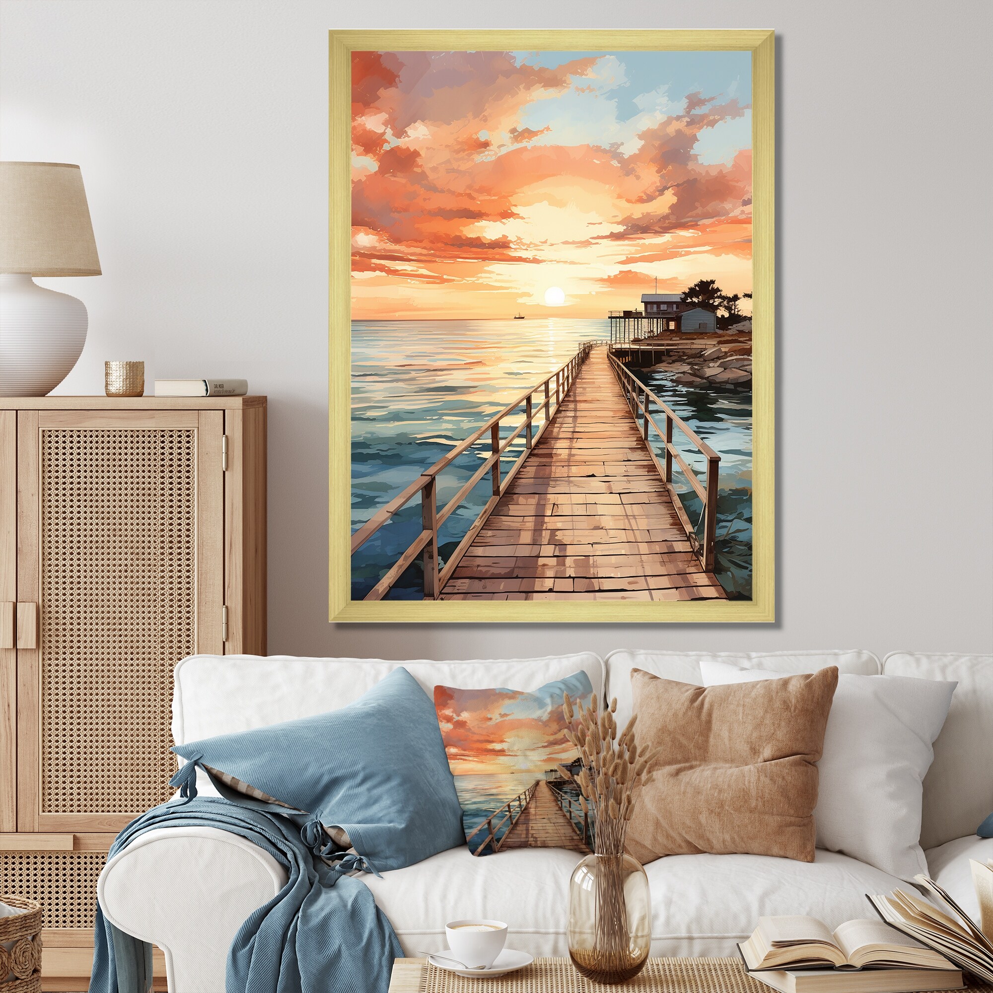 Designart "Miami Sunset Pier II" City Miami Framed Canvas Art Print