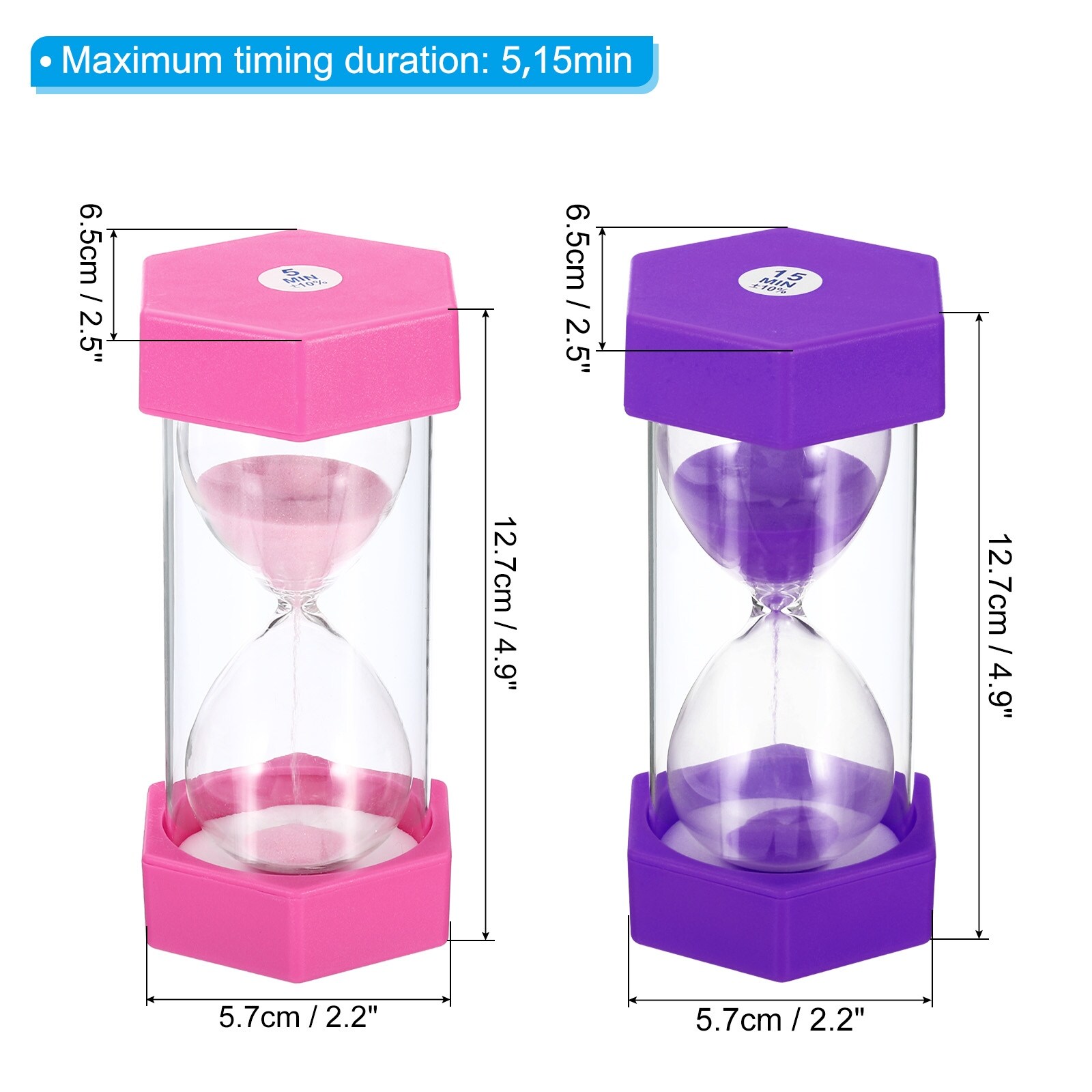 5,15 Min Sand Timer,2pcs Hexagon with Cover,Count Down Sand Clock Pink,Purple - Pink, Purple
