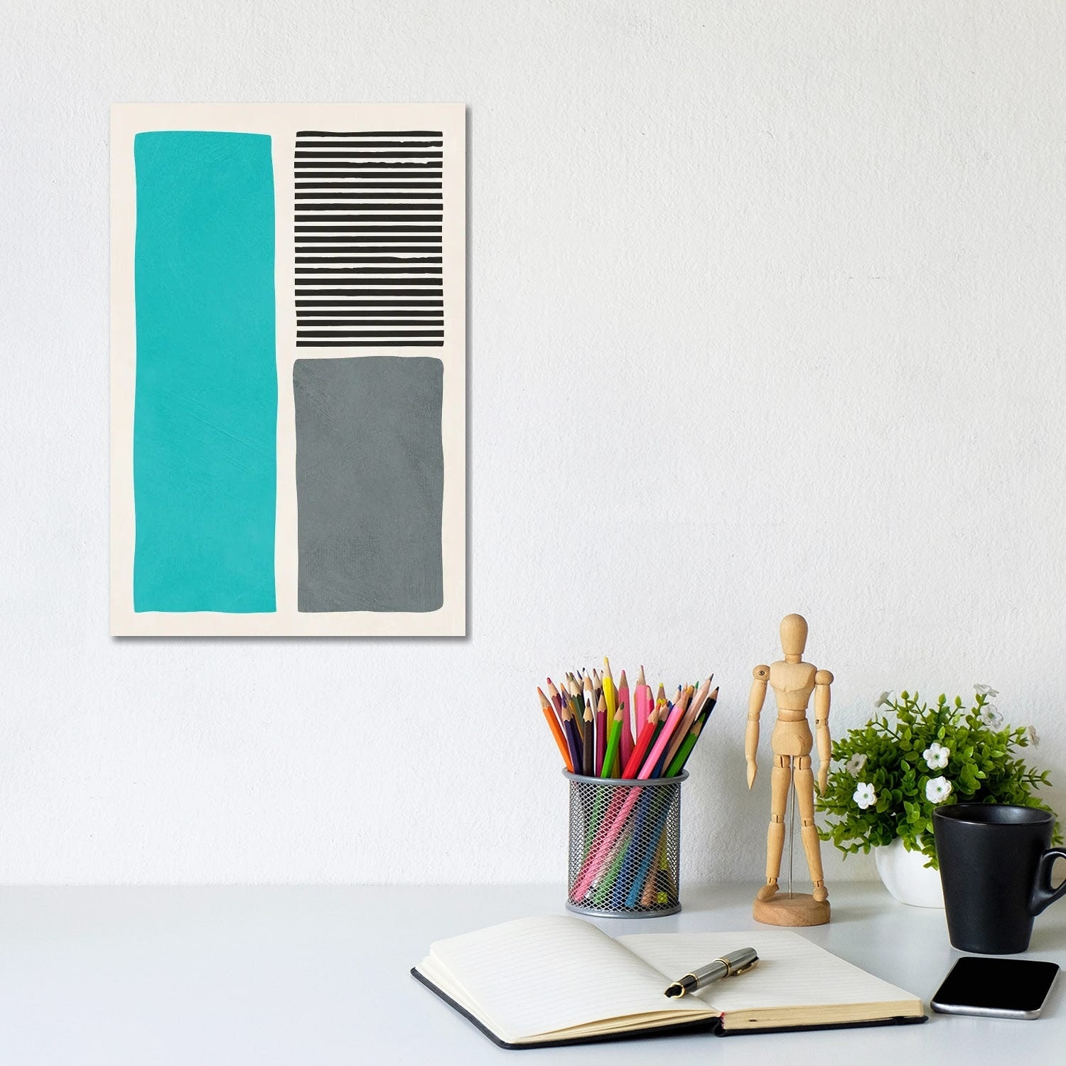 iCanvas "Turquoise Gray Min Abstract Black Lines" by EmcDesignLab Canvas Print